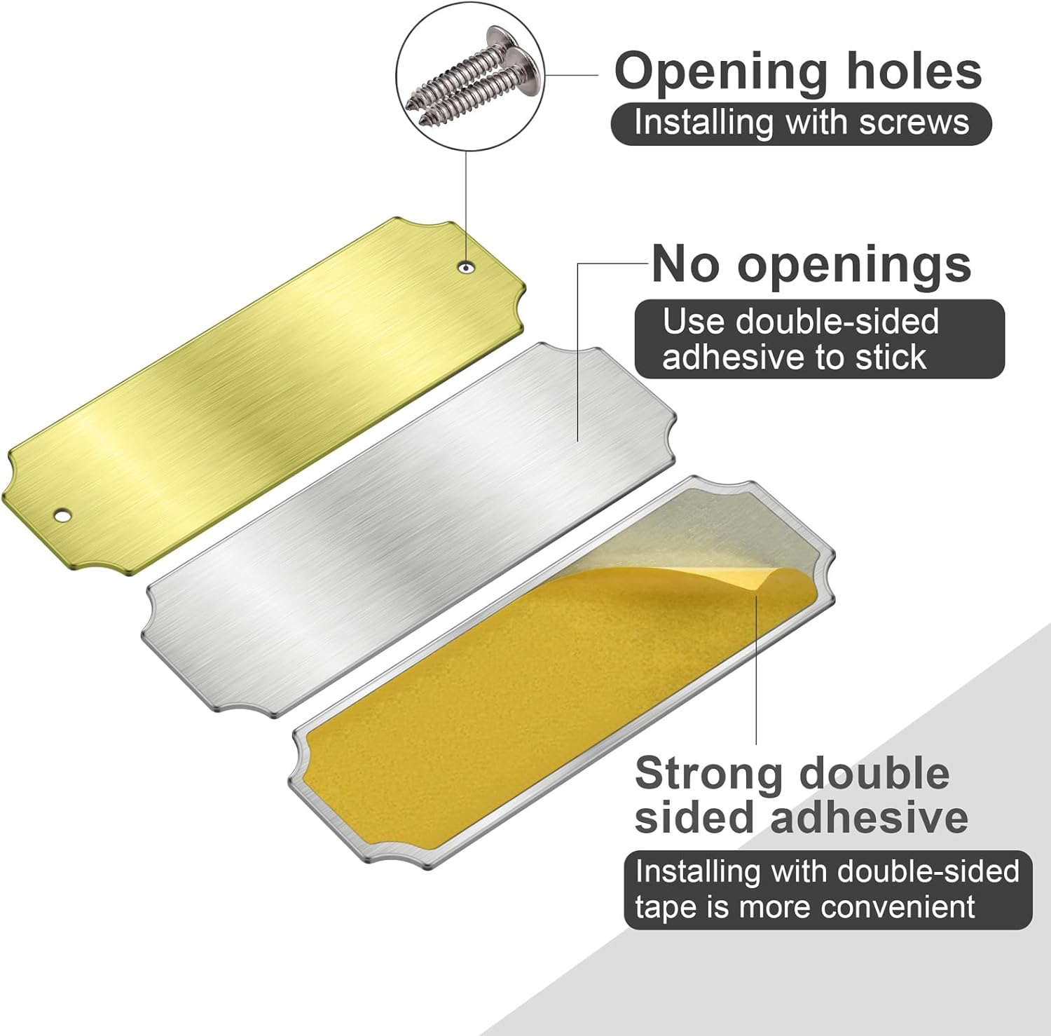 - Customizable Design: Easily personalize your nameplate with engraved text or numbers. Whether it's names, addresses, or special messages, this metal tag can be tailored to suit awards, trophies, and graduation gifts.
