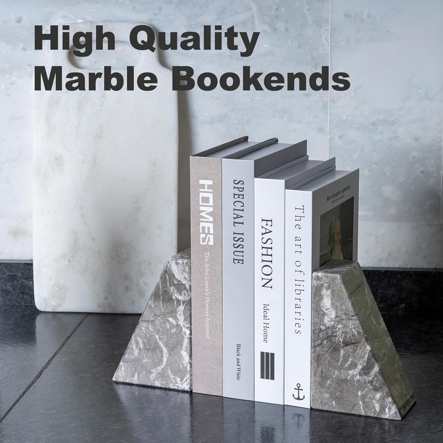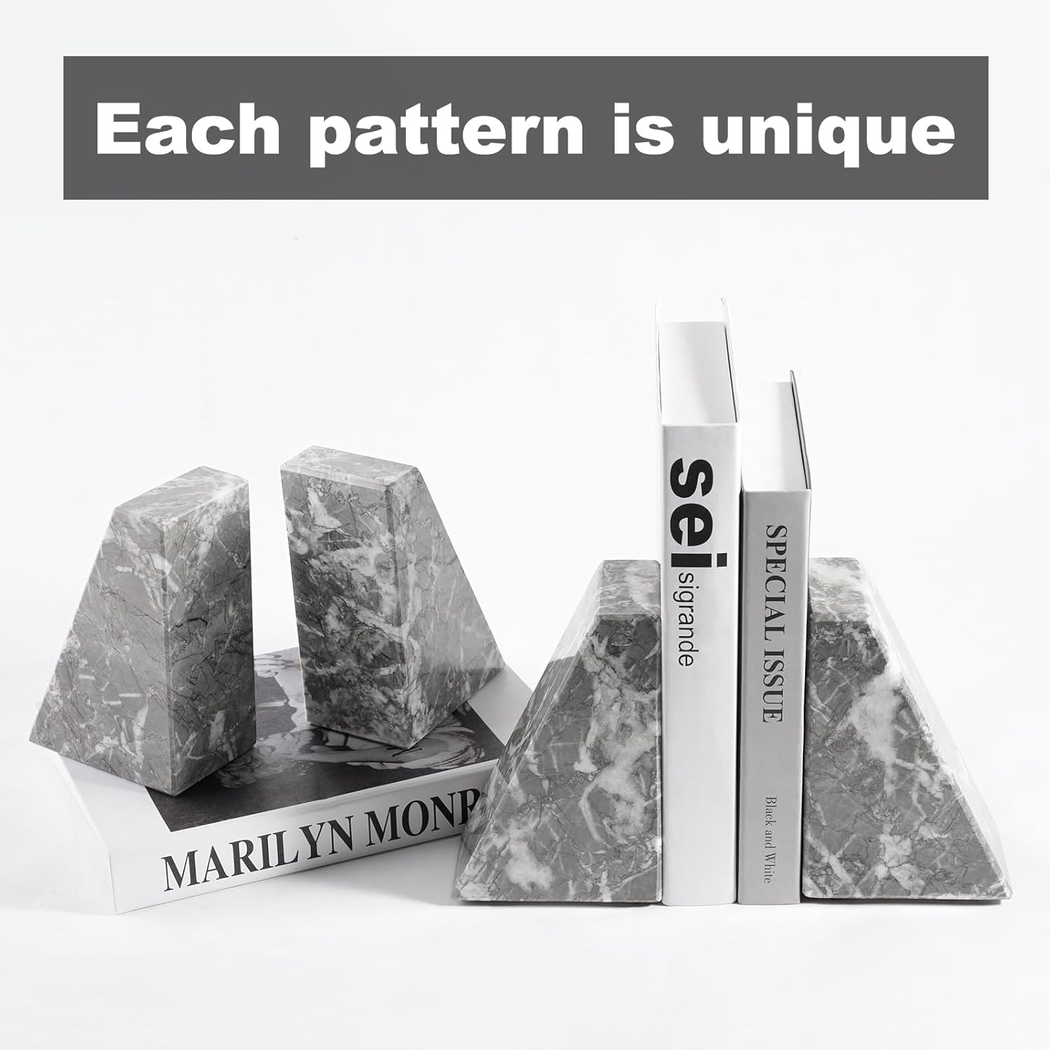 Marble Bookends for Heavy Books, Decorative Bookends for Shelves, Durable and Heavy-Duty Book End for Hardback Book & CDS, Unique Book Stopper & Holder, Gris Lido, Set of 2