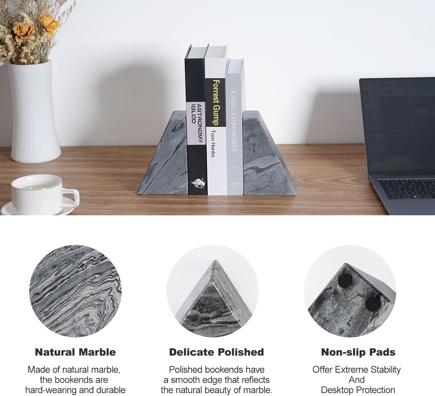 - STRONG AND DURABLE: This bookends for shelves can make a space look elegant and modern. Made of high-quality marble, it will remain original form after a long time of use. The book ends also maintains long-term stability and will not be deformed by external factors, ensuring that your books are always securely placed.