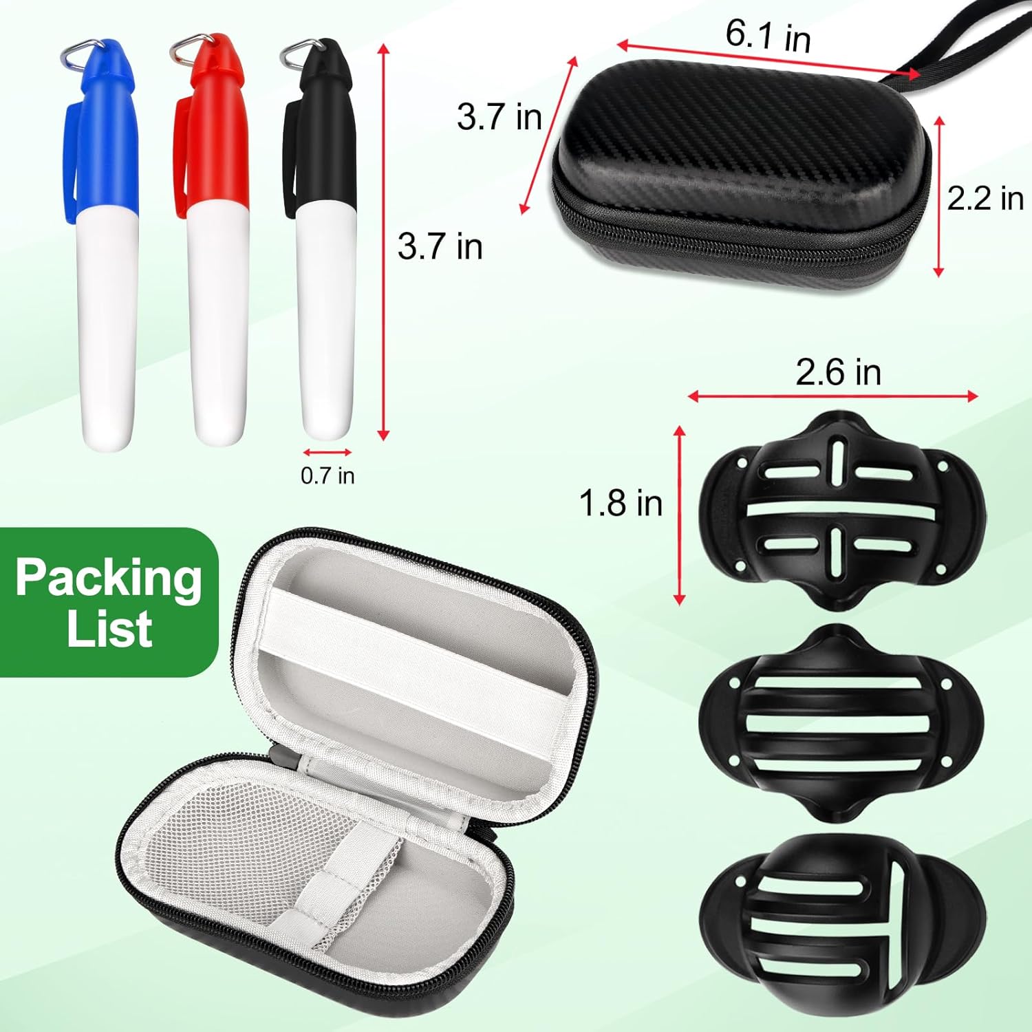 - What You Get -Golf ball line marker tool kits come with three semi-sphere stencils, 3 golf ball markers (black + blue + red) and a special organizer case. All these golf ball marker tools are neatly arranged within a convenient and portable organizer case, ensuring effortless storage for on-the-go convenience. Note: golf balls are not included in the package