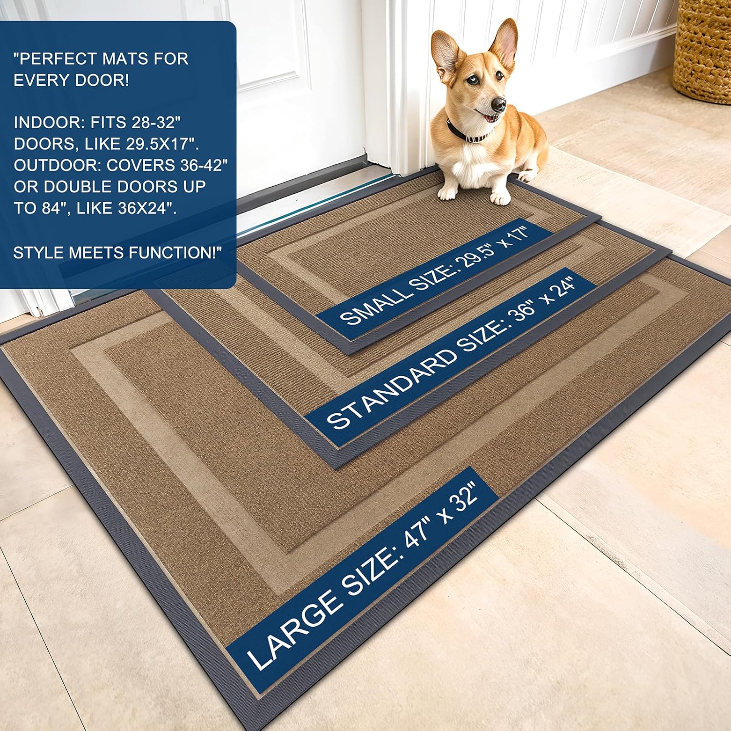 OLANLY Front Door Mat Indoor Outdoor Entrance, Waterproof All-Season, All-Weather Doormat, Sturdy Natural Rubber, Fade Resistant, Low Profile, Easy Clean Patio Porch Entryway Mat, 59x35, Light Brown