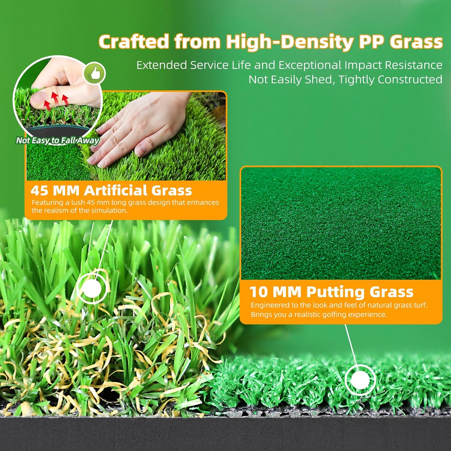 - Realistic Golf Experience: Our golf mat surface features with dual 45 mm long grass and 10 mm turf, and the slope sponges can simulate different slope heights, creating you a realistic golf courses.