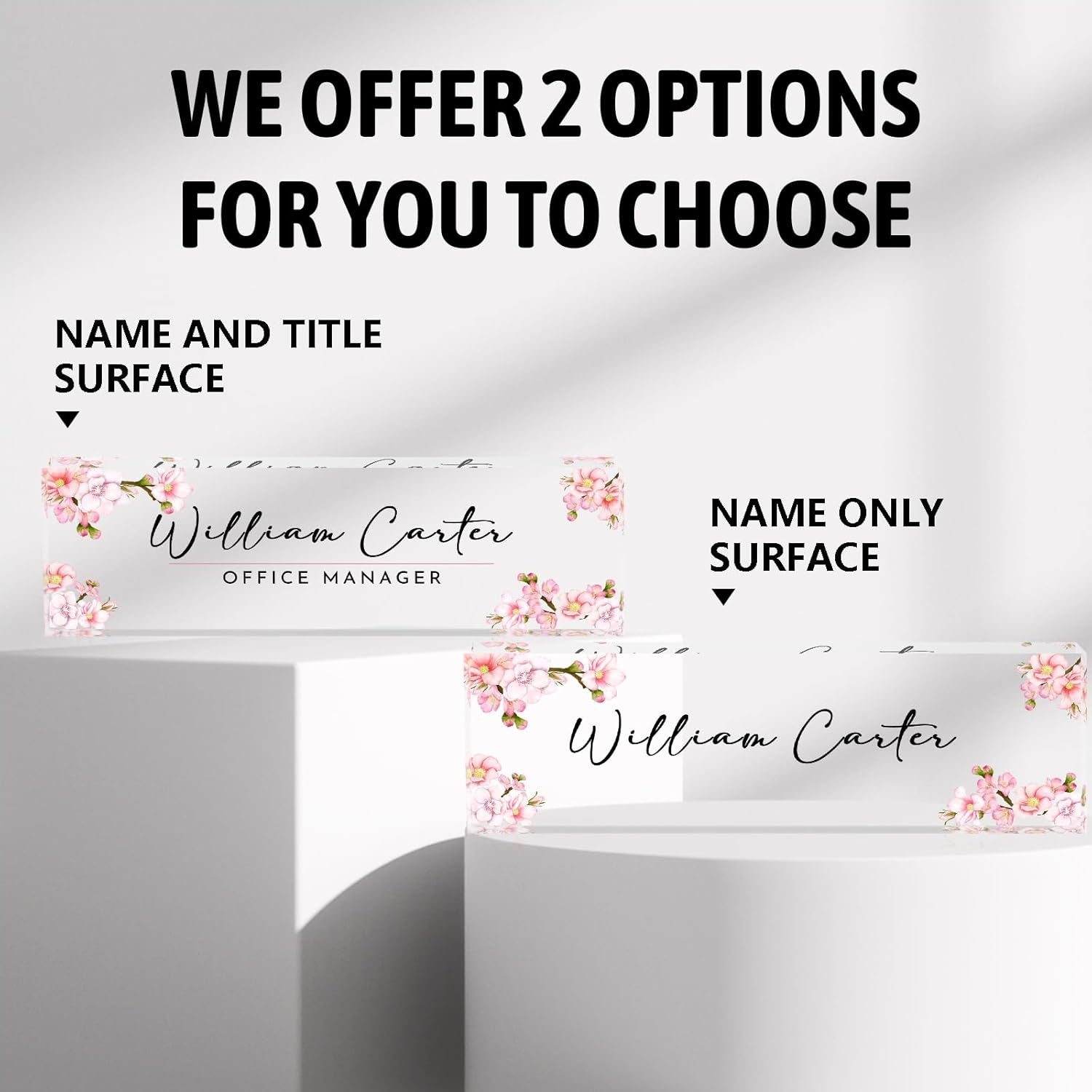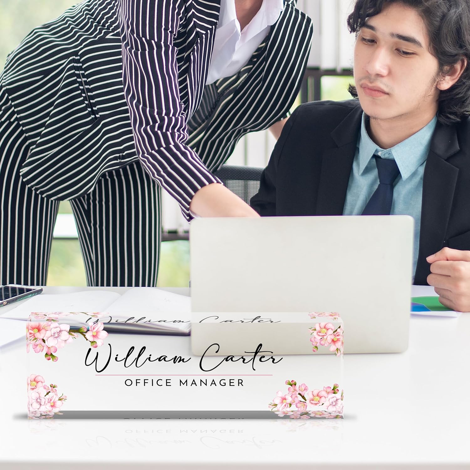 Personalized Name Plate for Desk Custom Acrylic Desk Name Plate Custom Employee Appreciation Gifts Office Gifts for Women, Men, Boss, Coworkers, Teacher, Nurse (Sakura A)