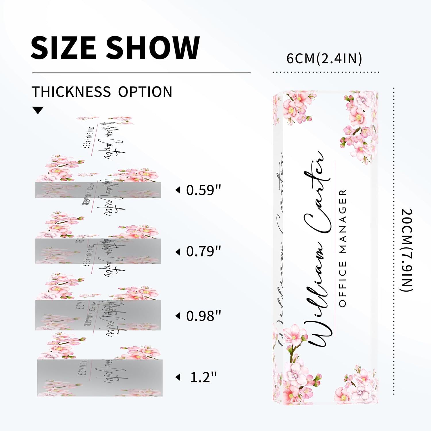 - Desk Name Plate Personalized: We offer 4 name plate thicknesses 0.59, 0.79, 0.98, 1.2 inches thick and a variety of styles for you to choose from ensure your desktop name plate matches your brand's aesthetic and your own personal sense of style, Eye-catching on any desk or bookshelf, this office nameplate can also be used to decorate a desk, give the office a professional look, and communicate important information to clients and employees, And we will update more new styles from time to time.