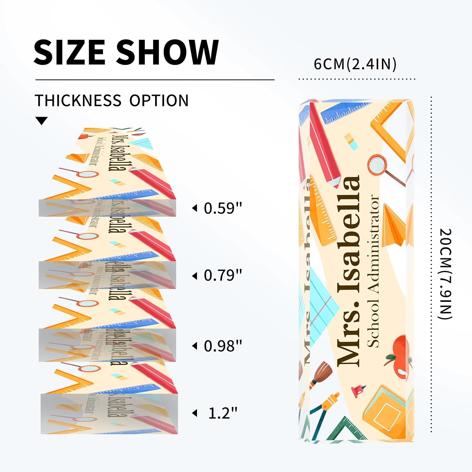 - Desk Name Plate Personalized: We offer 4 name plate thicknesses 0.59, 0.79, 0.98, 1.2 inches thick and a variety of styles for you to choose from ensure your desktop name plate matches your brand's aesthetic and your own personal sense of style, Eye-catching on any desk or bookshelf, this office nameplate can also be used to decorate a desk, give the office a professional look, and communicate important information to clients and employees, And we will update more new styles from time to time.