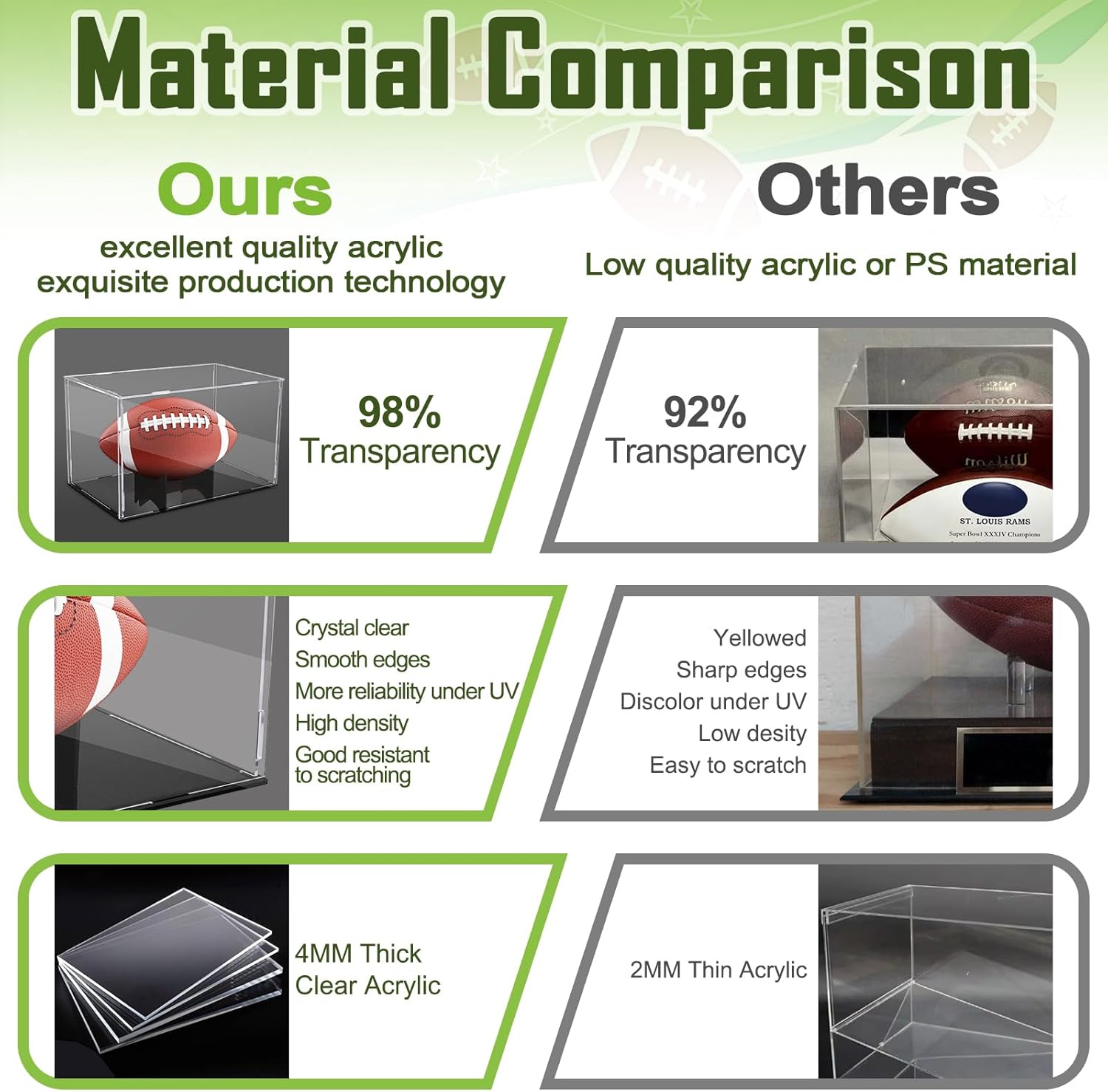 - Perfect Gift Idea -Surprise your BFF with our display box! The clear acrylic display box is perfect for Football, soccer, baseball, collectibles, souvenirs, and more. It is also a perfect gift for your husband, son, friend, sports fan, and sports enthusiast. They'll love displaying their collectibles collection with pride and preserving their memories for years to come.