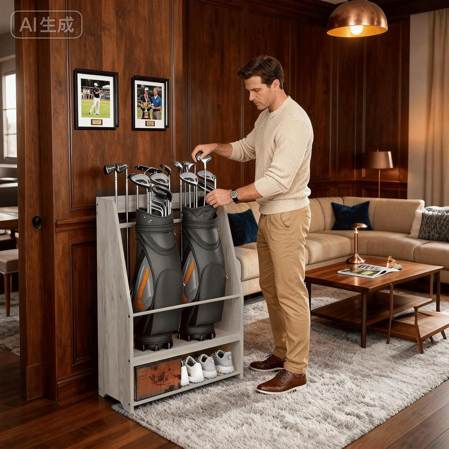 - Premium Wooden Structure: Crafted from natural solid wood, this golf storage rack is sturdier, more stable, and more elegant than most metal organizers. No rust, no squeaky noises, and a load capacity of 100 lbs ensure reliable long-term use.