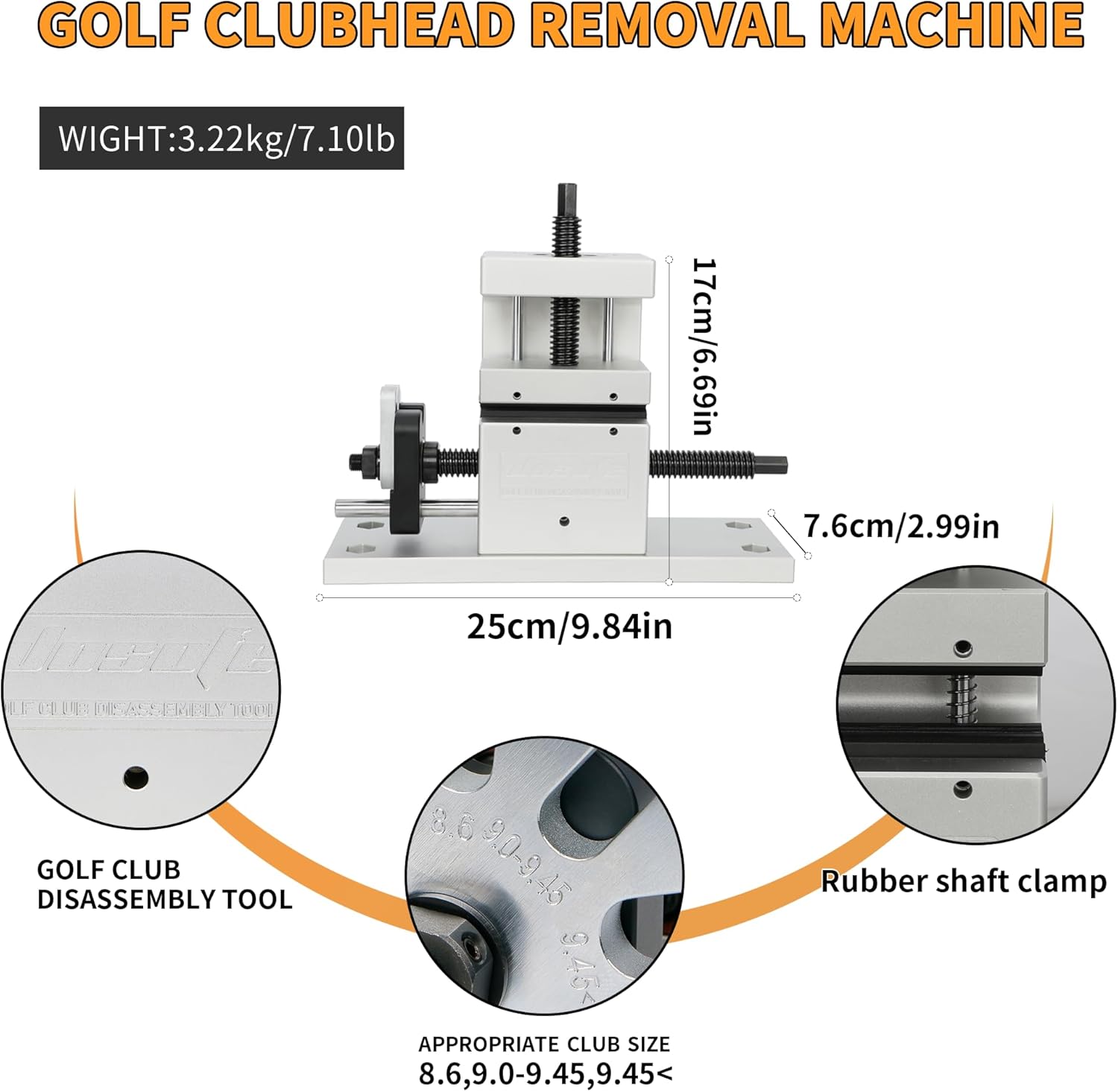 - 【Product Specifications】The size of the Golf clubhead separator is 9.84 in * 6.69 in * 2.99 in and its weight is 7.10 lb.This golf workbench is small in size while also being able to efficiently remove the clubhead from the shaft. So it is an tool for any golf workshop repair, making club repair and customization easier than ever before.