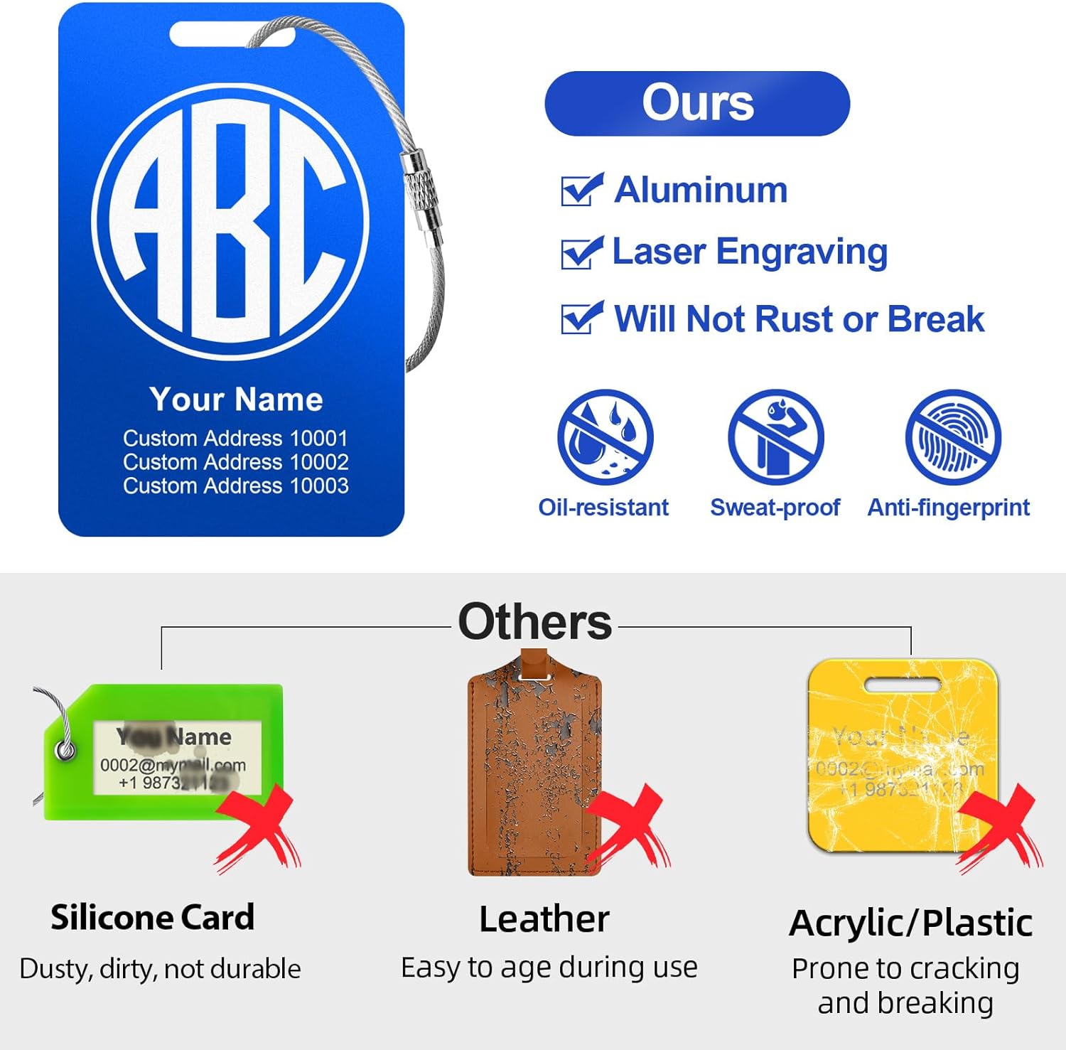 - 【Customized For Your Journey】 Our luggage tags are curated to simplify your travel experiences. No matter business trip, Caribbean cruise, family vacation, outdoor adventure, or golfing, these tags are your quick solution to identifying your luggages.