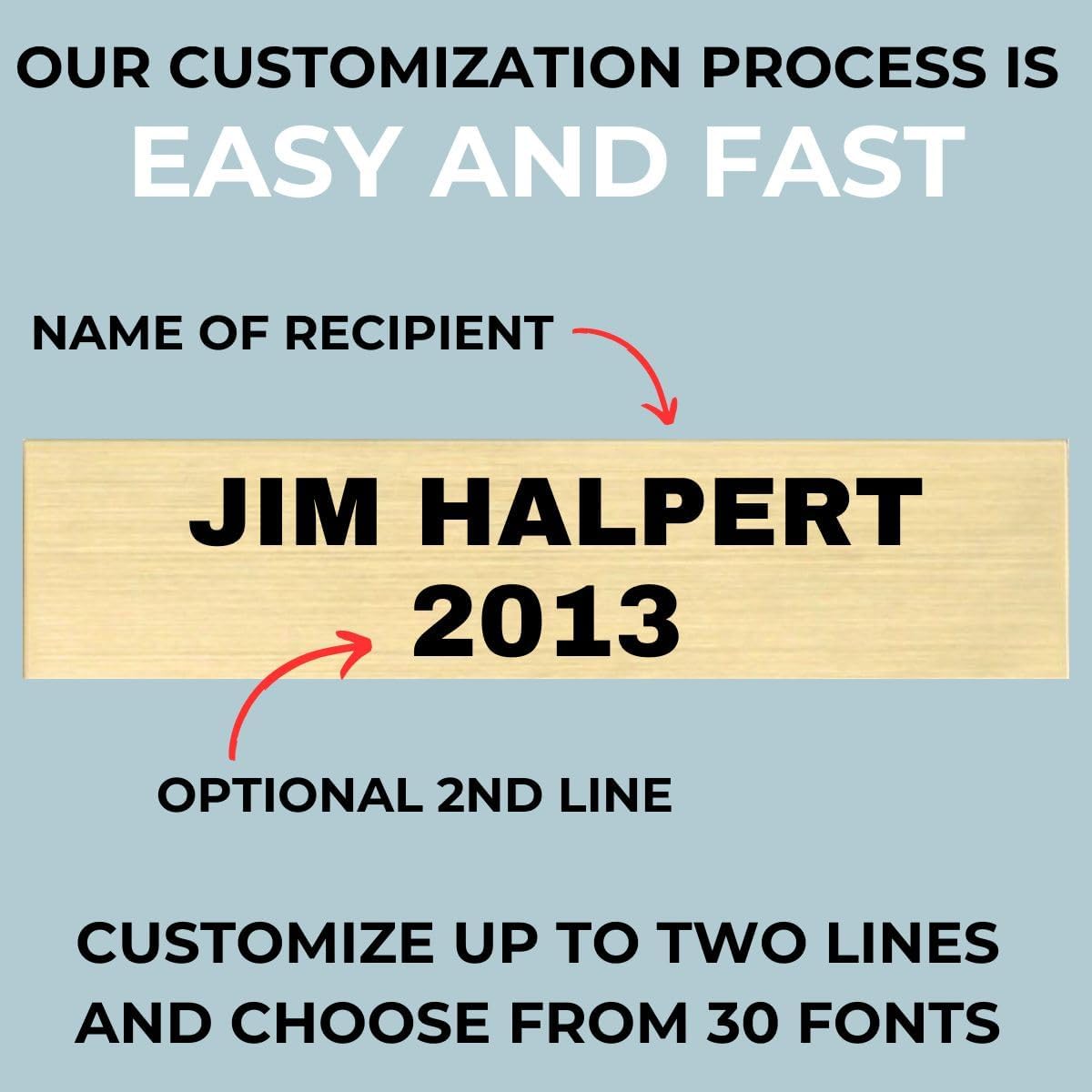 - ✏️PRECISION ENGRAVED PERSONALIZATION: Laser engraved with your recipient’s name, and an optional second line for information such as year awarded. Engrave up to two lines and choose from 30 different fonts.