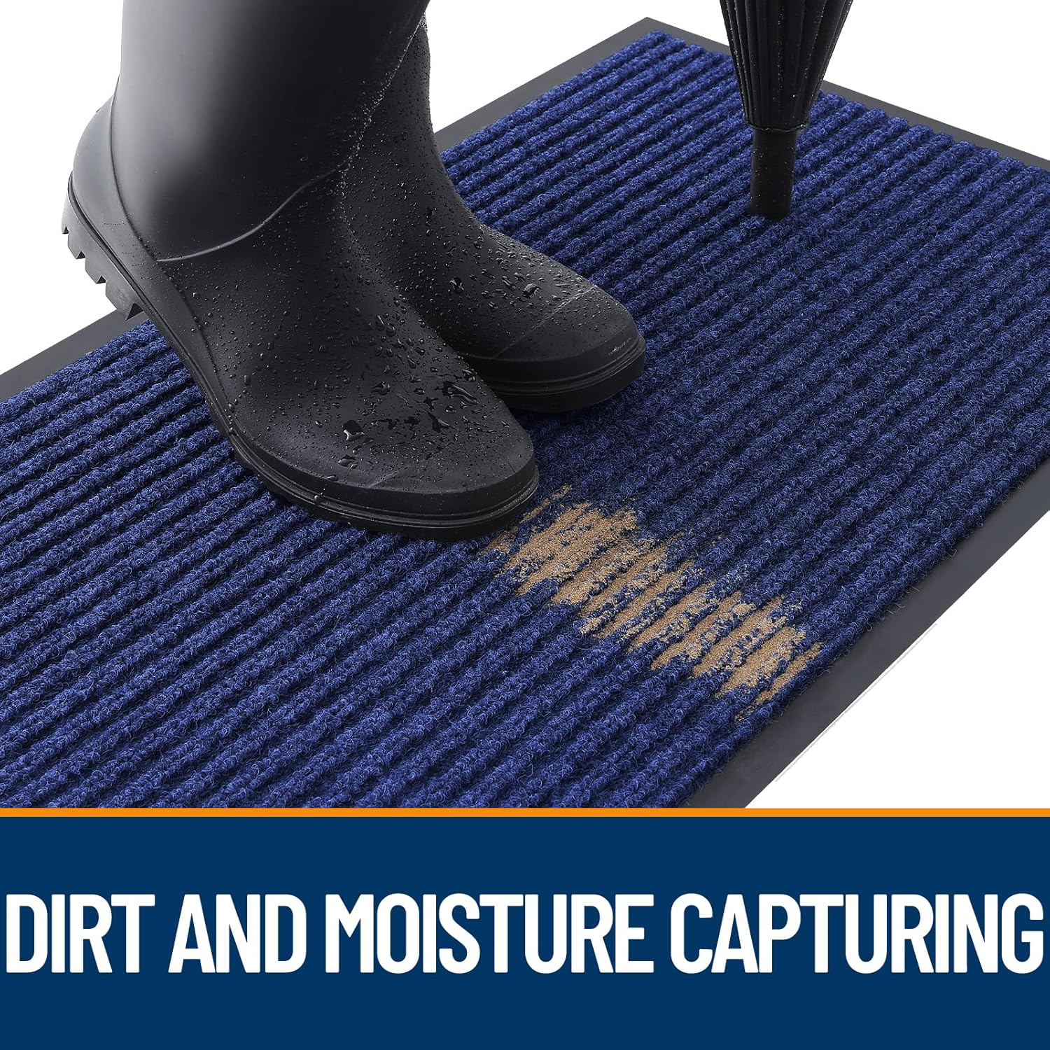 OLANLY Front Door Mat Indoor Outdoor Entrance, Waterproof Heavy Duty Doormat, Fade Resistant, Low Profile, Easy Clean Patio Porch Welcome Floor Mats for Entry, 59x35, Blue
