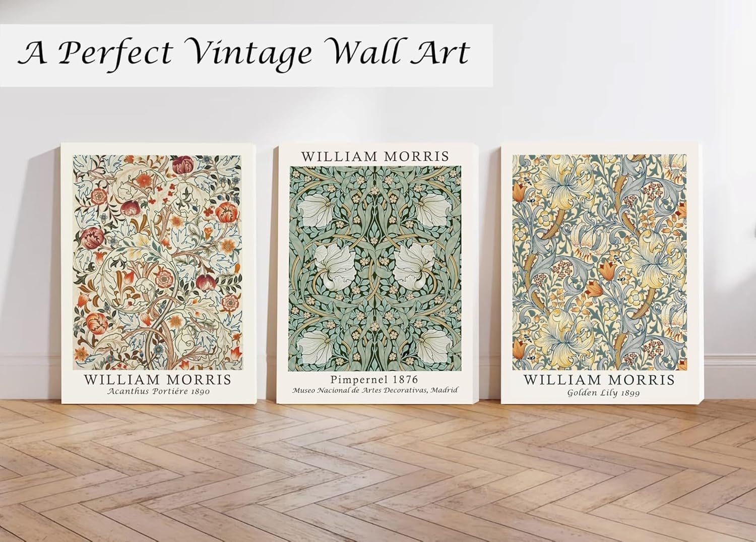 Induslyfe Framed Flower Wall Art Canvas Decor Set of 3, William Morris Wall Art Framed Prints Posters Mid Century Modern Art, Aesthetic Floral Botanical wall art for bedroom living room bathroom 12x16