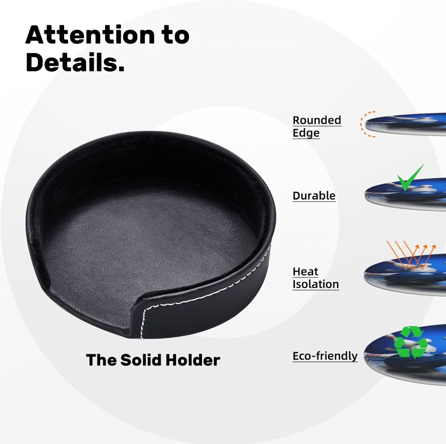 - Premium Material - Our drink coasters are made of premium-quality PU leather material, eco-friendly and no smell, lightweight and durable, non slip and waterproof, save your beloved table from stains and damaged by hot water, drink, coffee or tea.