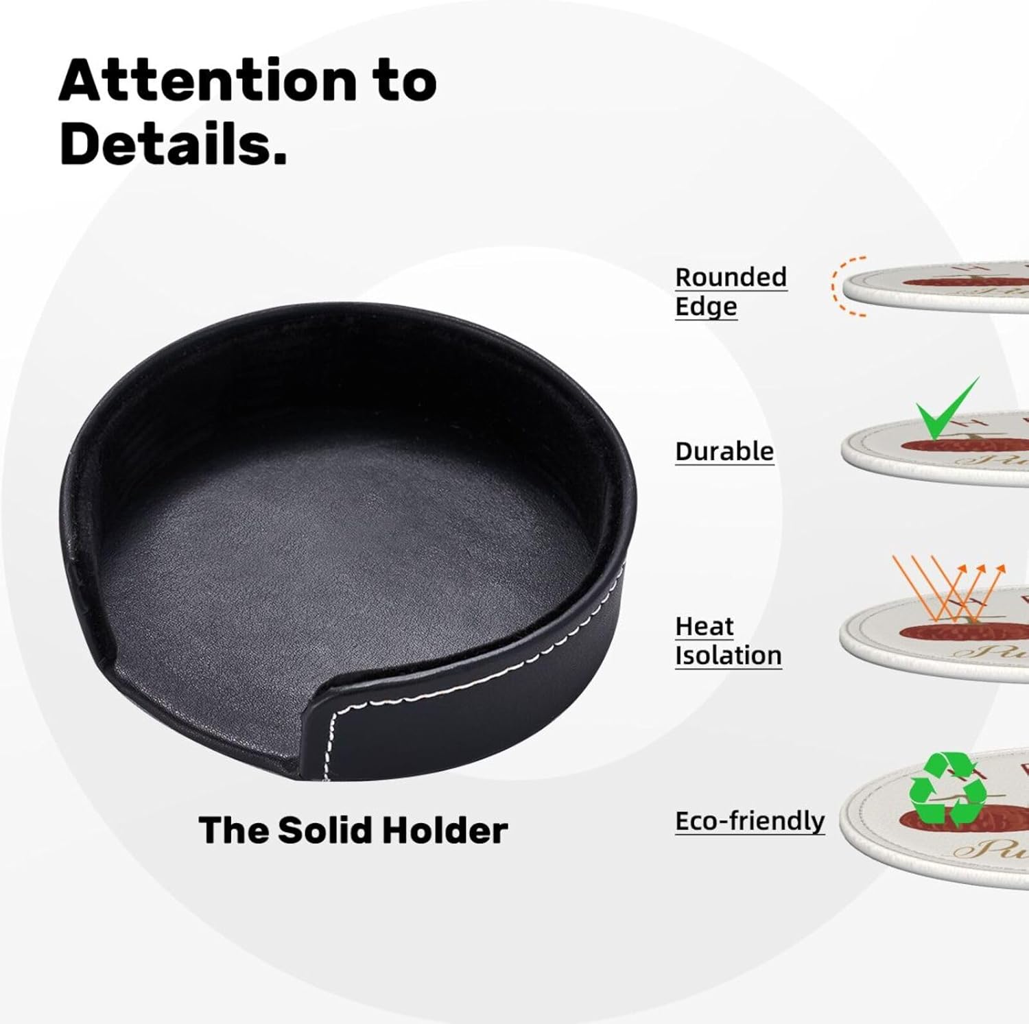 - Premium Material - Our drink coasters are made of premium-quality PU leather material, eco-friendly and no smell, lightweight and durable, non slip and waterproof, save your beloved table from stains and damaged by hot water, drink, coffee or tea.