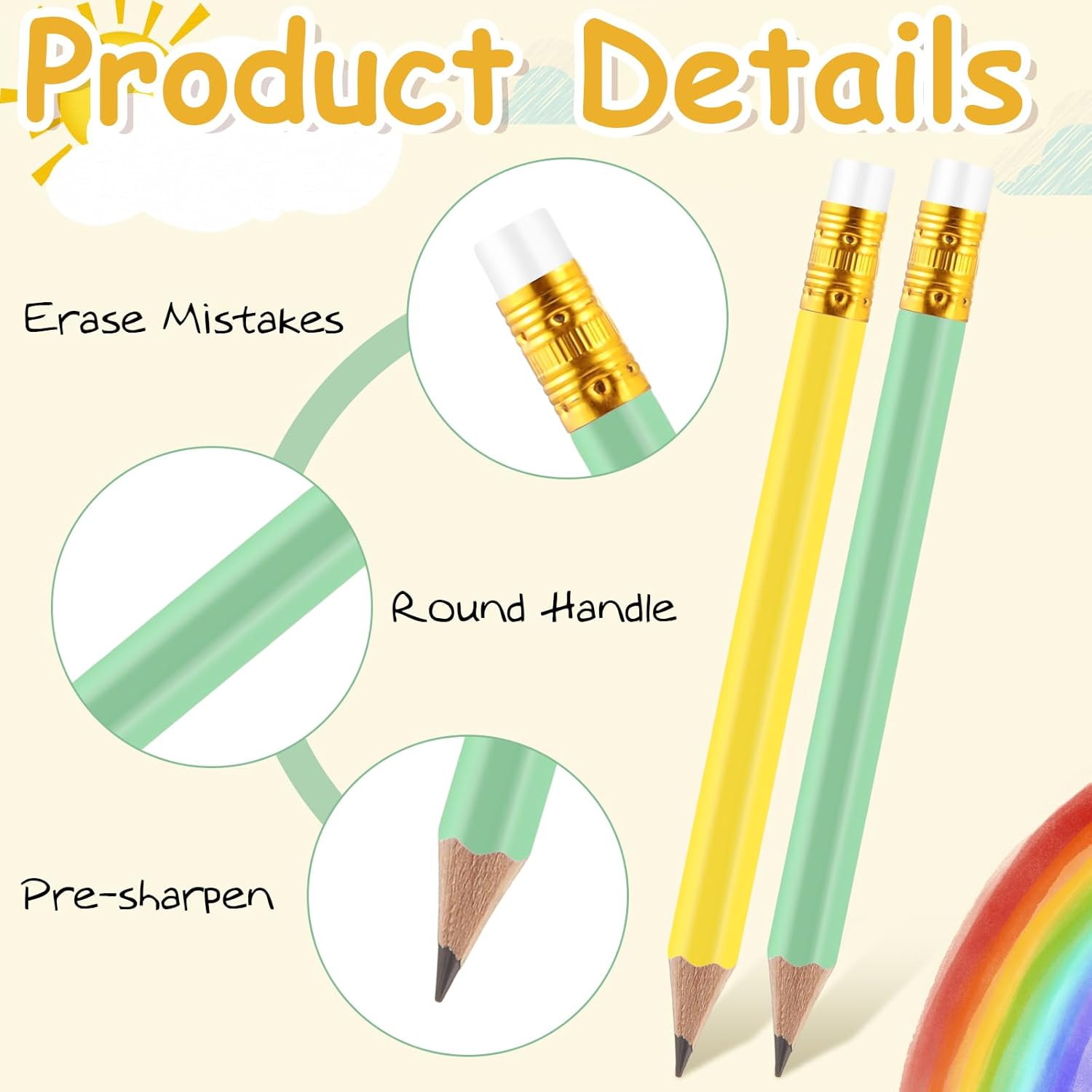 Outus 72 Pieces Golf Pencils Half Pencils with Eraser Mini Bulk Short #2 HB Pre Sharpened for Bridal Shower Wedding Office(Multicolor)
