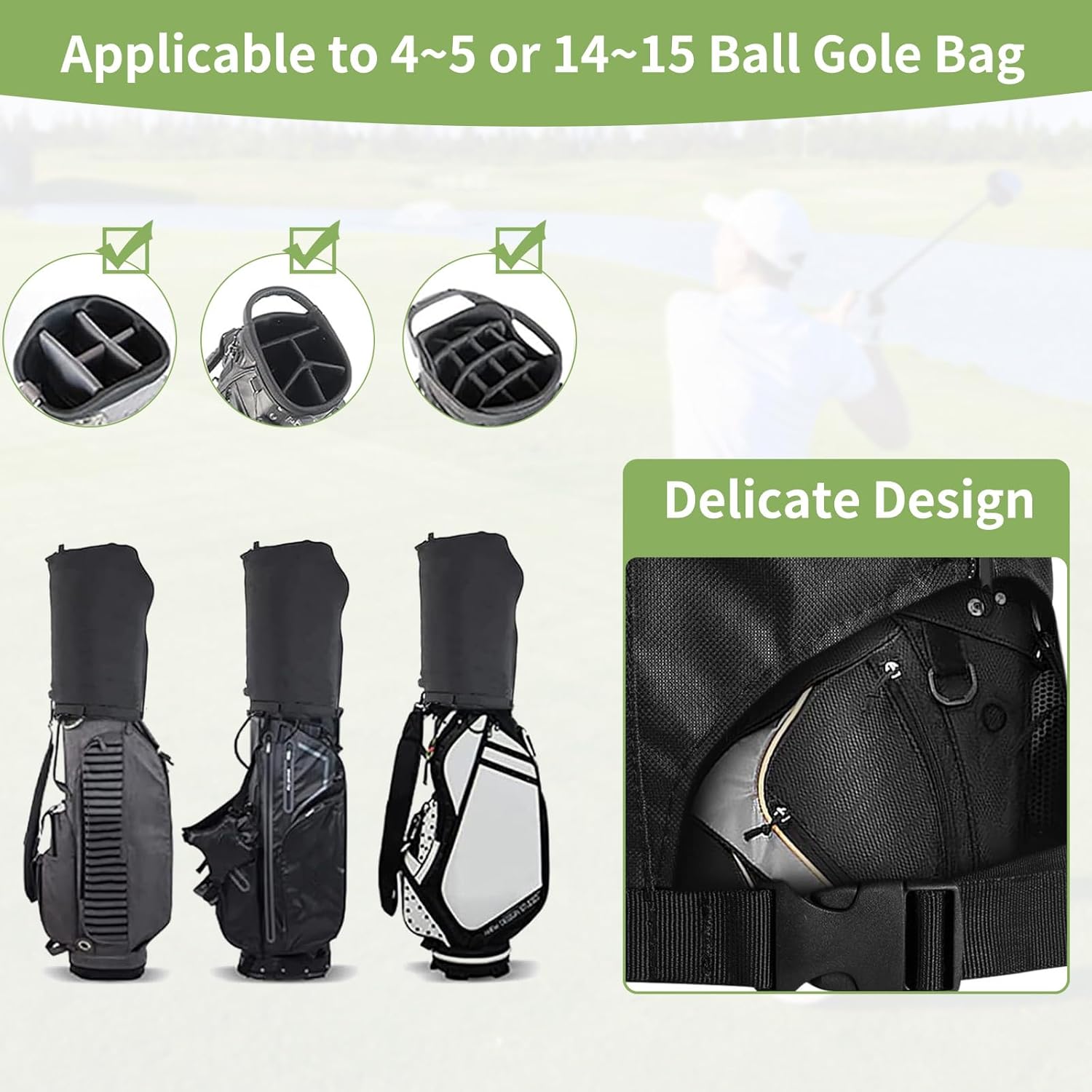- 【Universal Fit】Designed to fit 8.5~9.5 type golf caddy bags, the cover size is 13"L x 8"W x 20"H. Whether you're using a stand bag, cart bag, or travel cover, this cover fits them all.