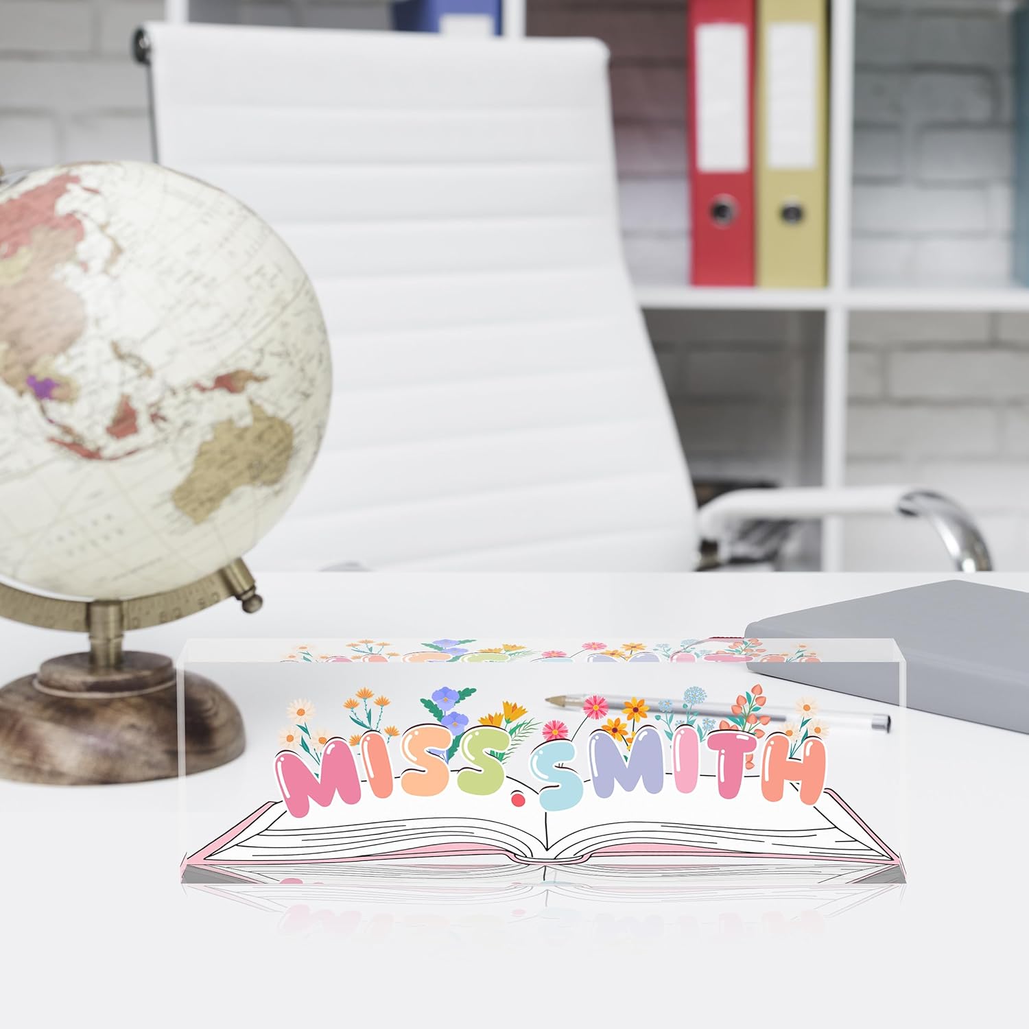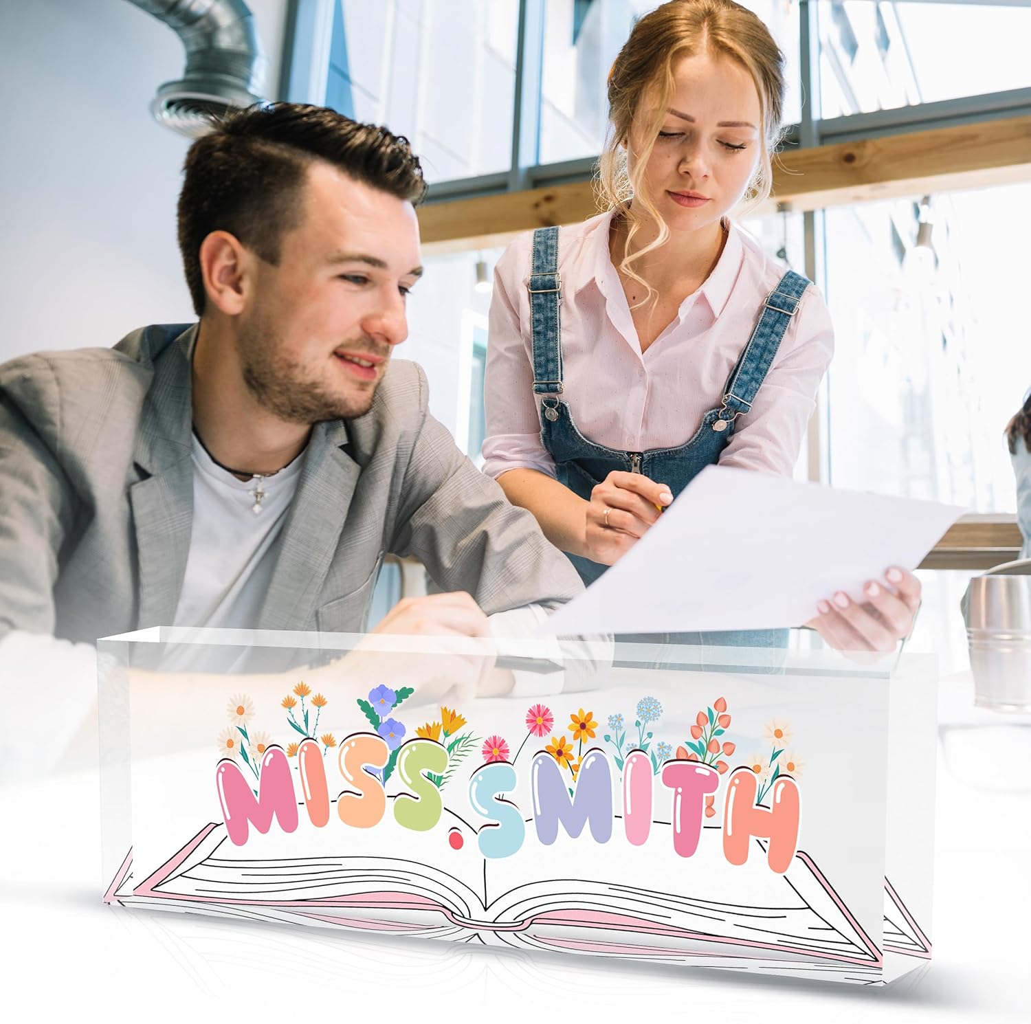 Teacher Name Plate for Desk, Desk Name Plate Personalized Acrylic Office Desk Decor, Teacher Appreciation Gifts The Office Gifts for Teacher