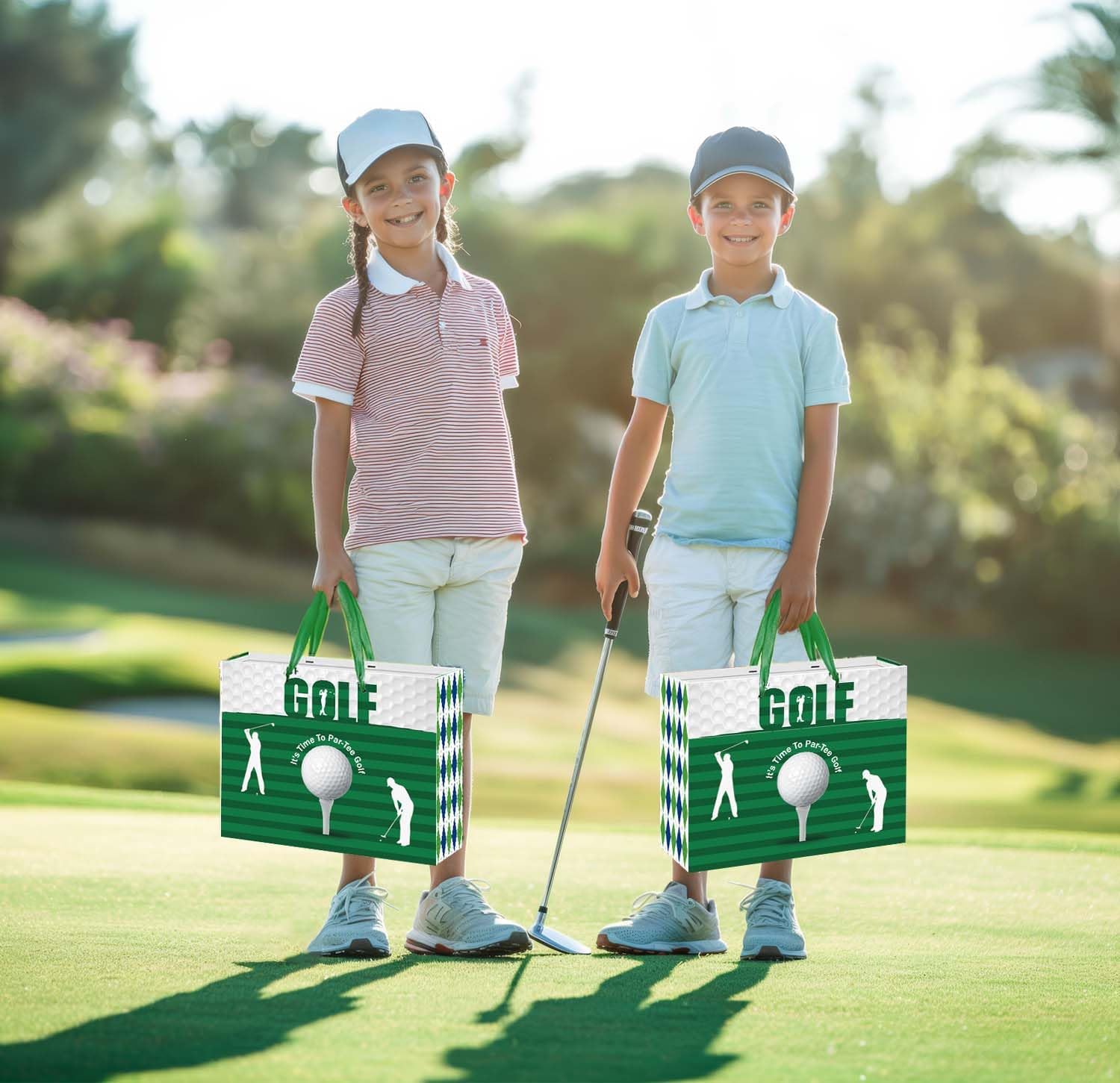 - Generous Dimensions: The green and white golf party bag measures 30 x 24 x 13.5 cm (11.8" x 9.4" x 5.31"), offering plenty of room for larger gifts. The matching golf-themed card is 18 x 12 cm (7.09" x 4.72"), and the green tissue paper measures 19.6" x 27.5", making it ideal for wrapping your presents