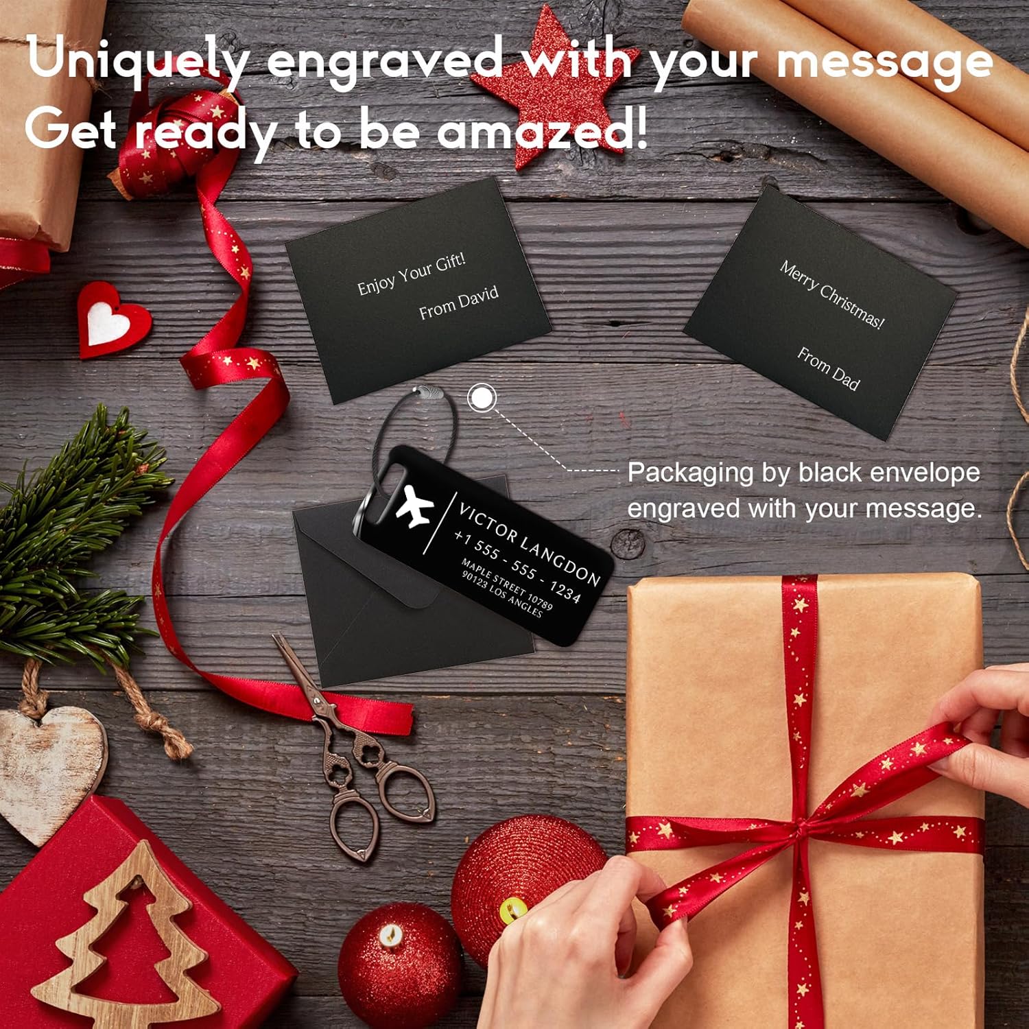 Personalized Luggage Tags for Suitcases - Stainless Steel Custom Luggage Tags for Backpacks & Bags, Sturdy, Waterproof & Heavy Duty (Black / 3" x 1.25")
