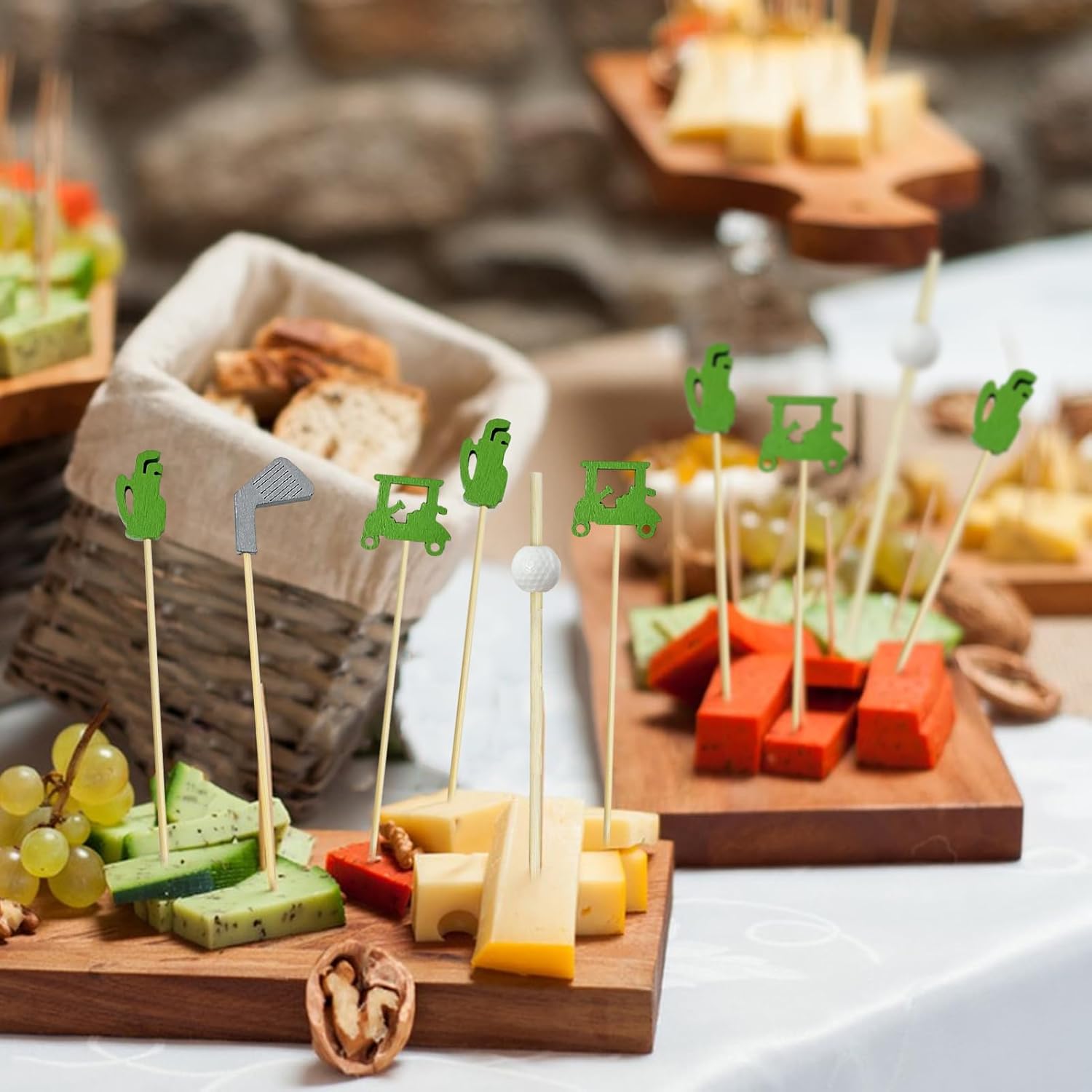 - MATERIAL-These golf theme toothpick are made of wood with a variety of shaped heads.the surface is smooth, and the shaped heads at the end makes it easier to hold and gives you a comfortable feeling of use. they are long enough to not break easily and you can insert various foods more easily.
