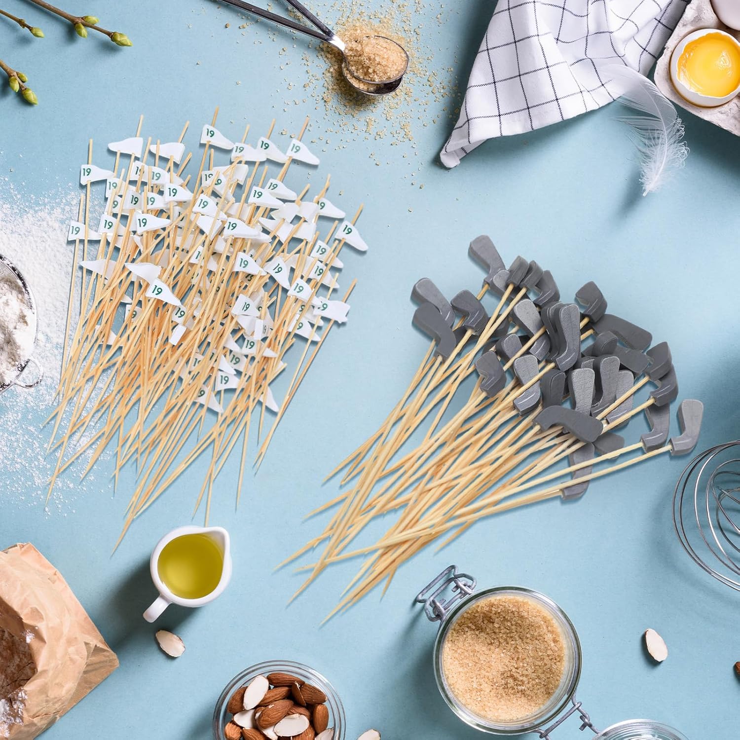 200 Pcs Golf Cocktail Picks 4.7" Golf Toothpicks for Appetizers Golf Club Drink Stirrers Golf Party Decor Birthday Cupcake Topper Sandwich Fruit Golf Skewer Bamboo Stick Holiday Supply(Number 19 Flag)