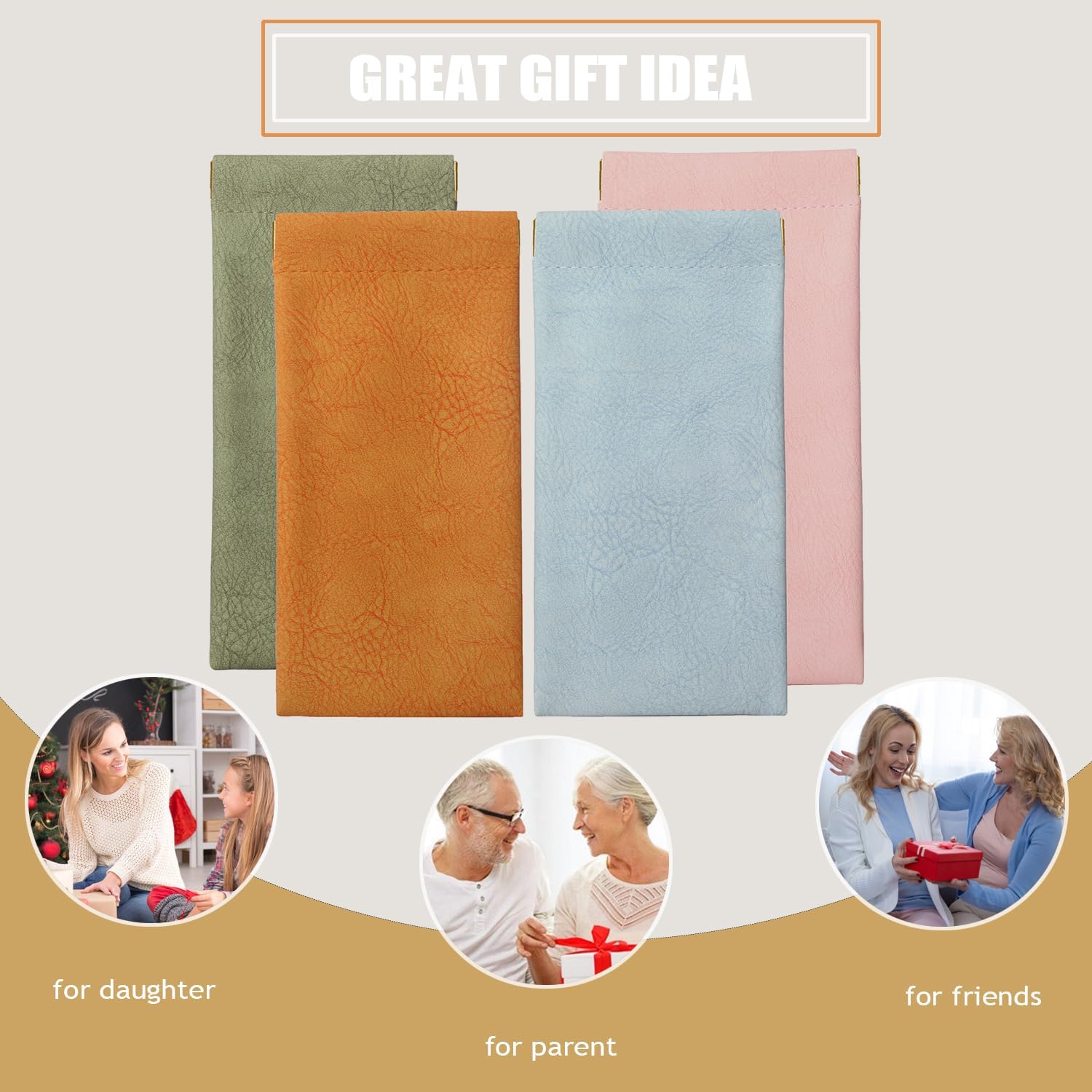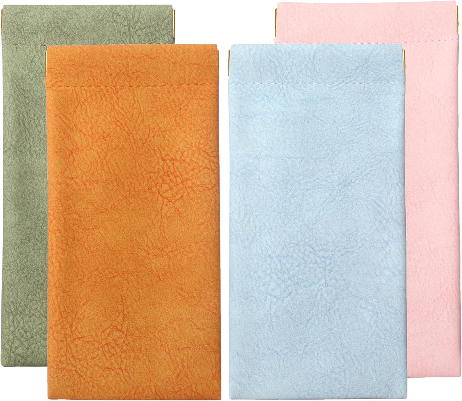 4 Pack Squeeze Top Glasses Case Soft Leather Eyeglasses Cases Sunglasses Pouch Portable Glasses Pouch Bags