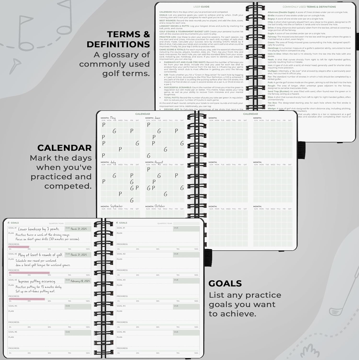 - AN ALL-IN-ONE GOLF LOG BOOK – This comprehensive golf log book is the perfect tool to plan your golf practice, track your performance, and work toward consistent improvement on your personal goals.