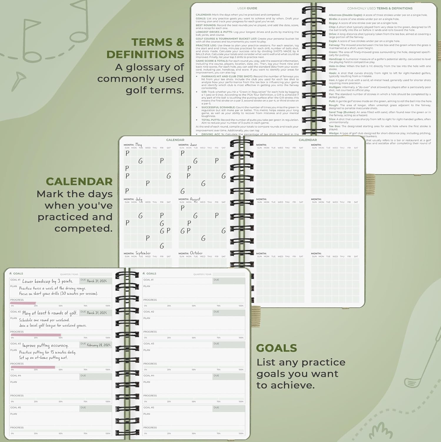 - AN ALL-IN-ONE GOLF LOG BOOK – This comprehensive golf log book is the perfect tool to plan your golf practice, track your performance, and work toward consistent improvement on your personal goals.