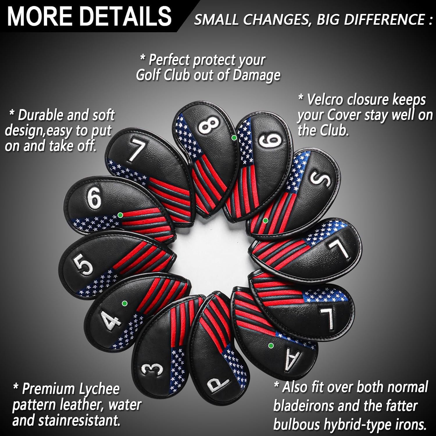 Golf Club Covers Iron Value 12 Pack Stylish Synthetic Leather Headcover, Embroidery Numbers Head Covers Universal Protector Fit Main Iron Wedge Clubs, Accessories Travel for Men Women