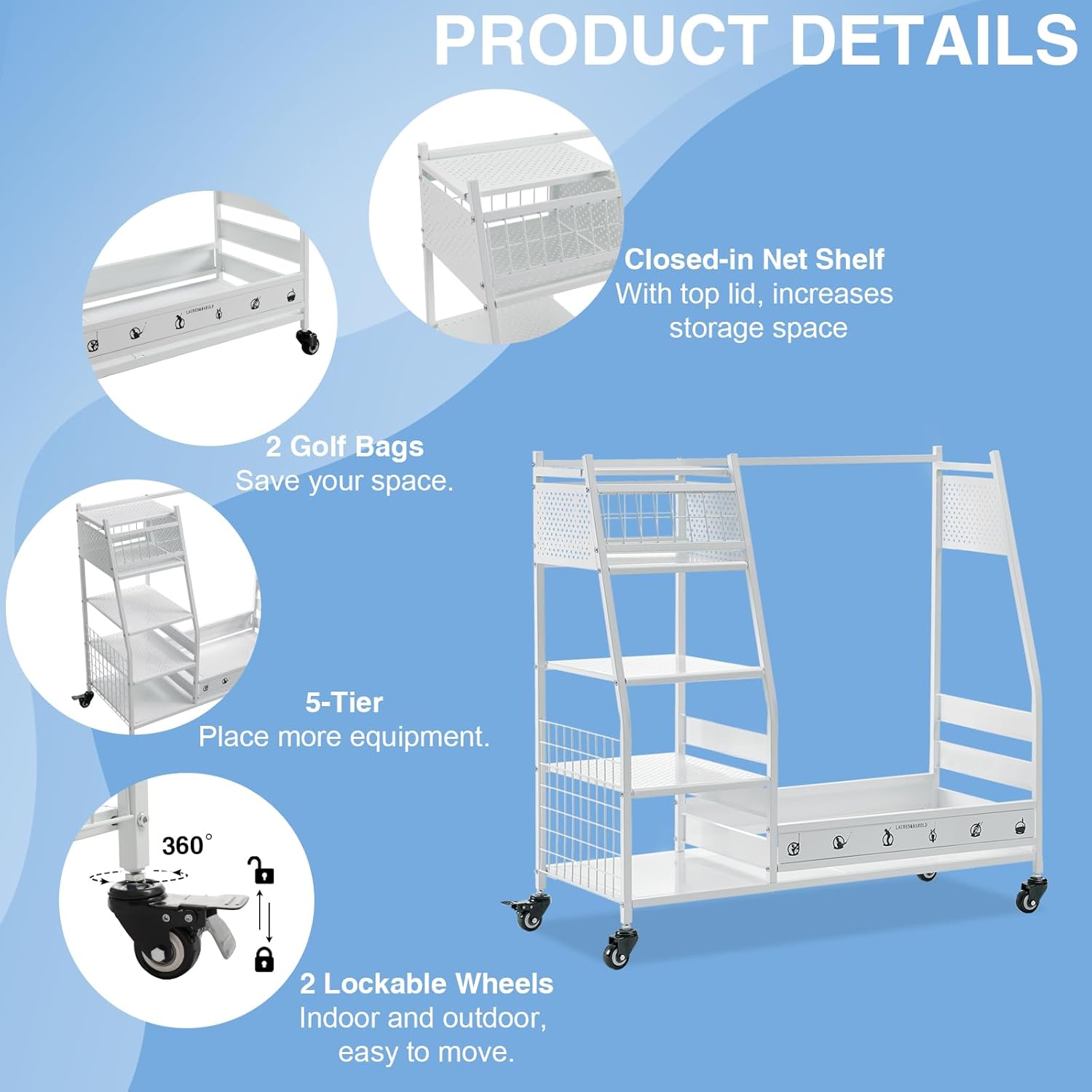 - Special Feature : Golf Bag Holder for Garage, Heavy-duty Golf Organizer for Garage, Metal Golf Bag Organizer for Garage, White Golf Club Storage Rack for Garage Golf Bag Holder for Garage, Heavy-duty Golf Organizer for Garage, Metal Golf Bag Organizer for Garage, White Golf Club Storage Rack for Garage