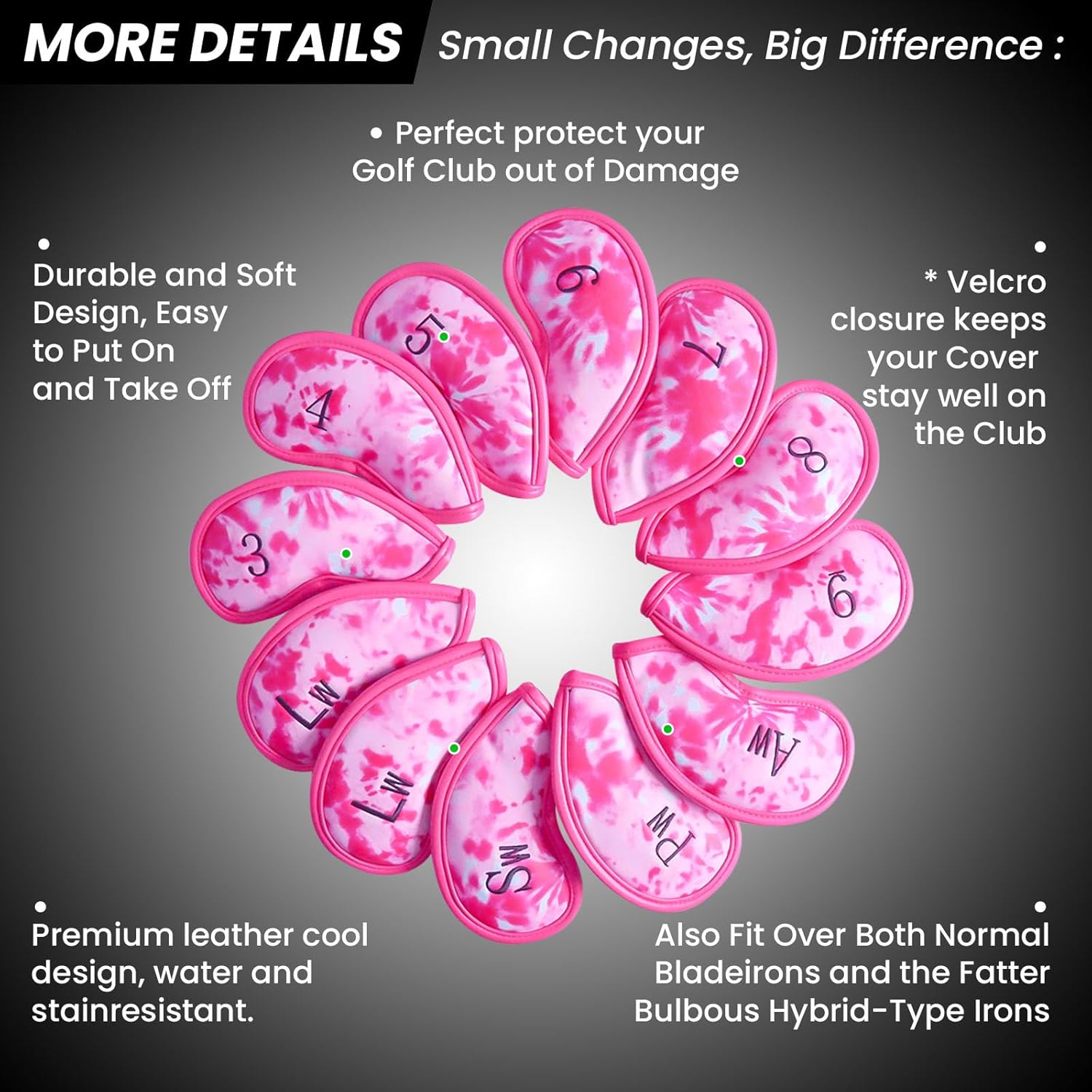 - Universal Fit, Easy On & Off: Slip these universal iron head covers on and off with ease. They fit most standard irons and wedges securely, staying in place as you play. Imagine moving smoothly from shot to shot—your rhythm never breaks, your clubs always stay protected.