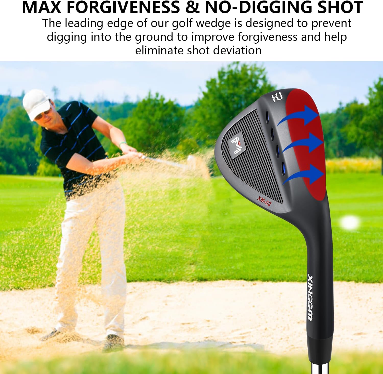 - MAX FORGIVENESS & NO-DIGGING SHOT:The leading edge of our golf wedge is designed to prevent digging into the ground to improve forgiveness and help eliminate shot deviation for a more consistent and accurate swing. Suitable for golfers of all levels