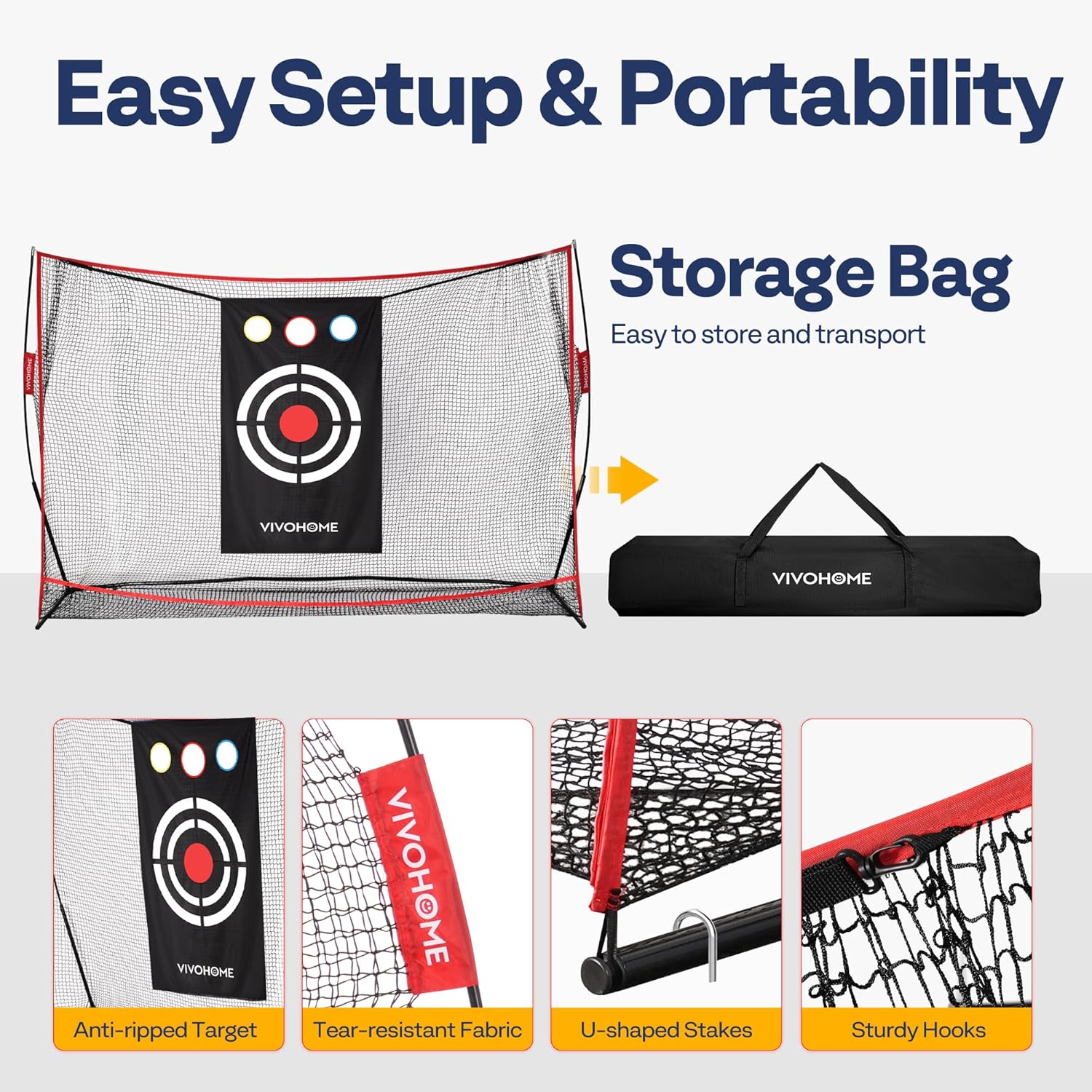 VIVOHOME 10 x 7ft Golf Net for Hitting, Chipping, Driving Training, Heavy Duty Golf Practice Net for Indoor, Backyard, Garage, with Mat, Target Cloth, 8 Tees, 6 Balls, Carry Bag