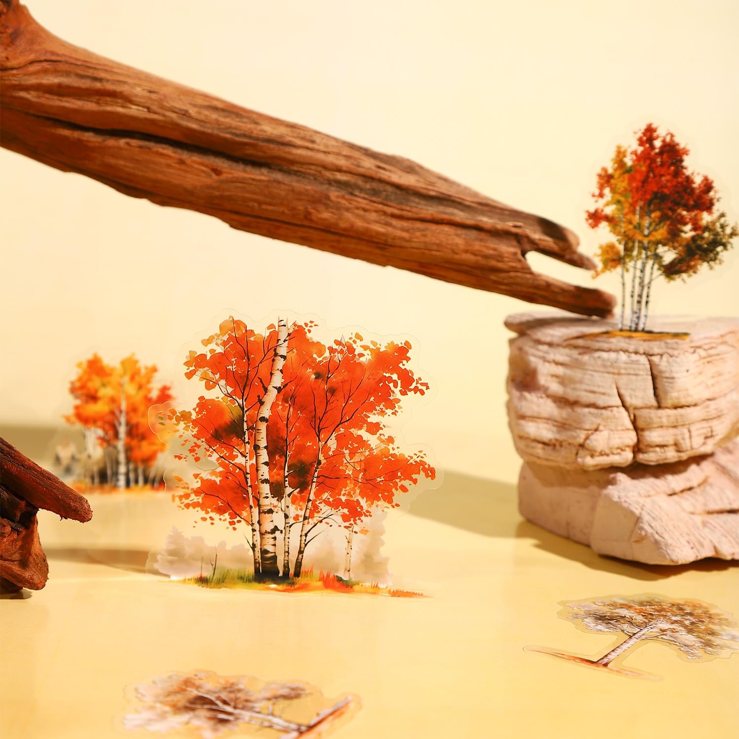 - Seasonal Birch Forest Theme: Explore the beauty of nature with our Birch Grove PET stickers, featuring a variety of birch trees in different seasonal settings. From the vibrant colors of autumn leaves to the fresh greens of spring, these stickers bring the serene charm of a birch forest to your creative projects