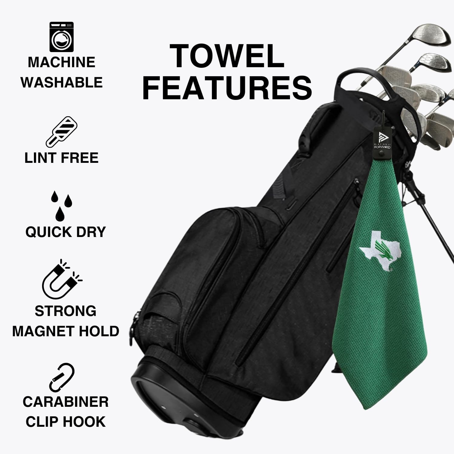 - ULTRA ABSORBENT & QUICK DRYING: Crafted from ultra-soft, lightweight microfiber waffle weave fabric, our golf towels for golf bags are highly absorbent and dries quickly. Its durable construction easily removes dirt, fade-resistant, and wrinkle-resistant. Designed for men and women, this golf towel with magnet is the ideal addition to any golf bag.