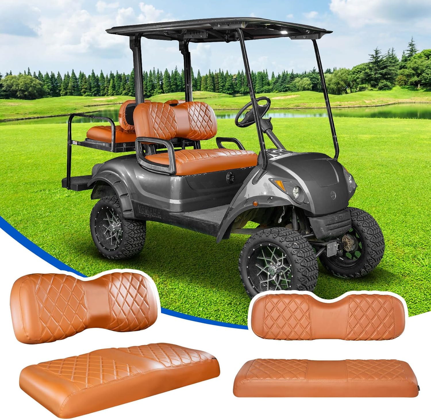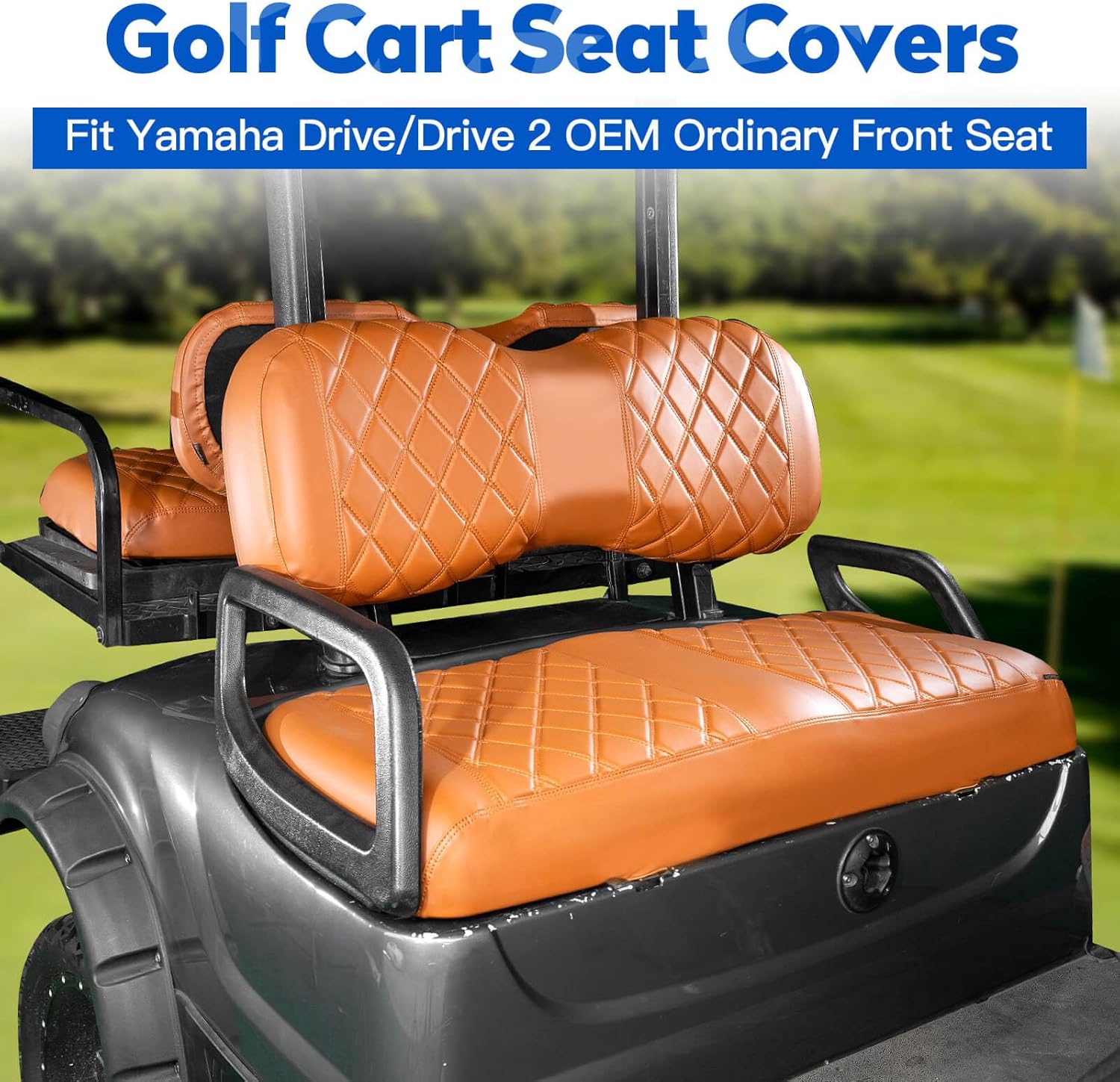 - NOKINS 4PCS Front&Rear Seat Covers Kit (All Brown): Front Seat covers Fits for YAMAHA/G29/Drive2 Golf Cart OEM Standard Seat Cushions. REAR SEAT COVERS FITS AFTERMARKET STANDARD CUSHIONS ONLY (B SHAPE).
