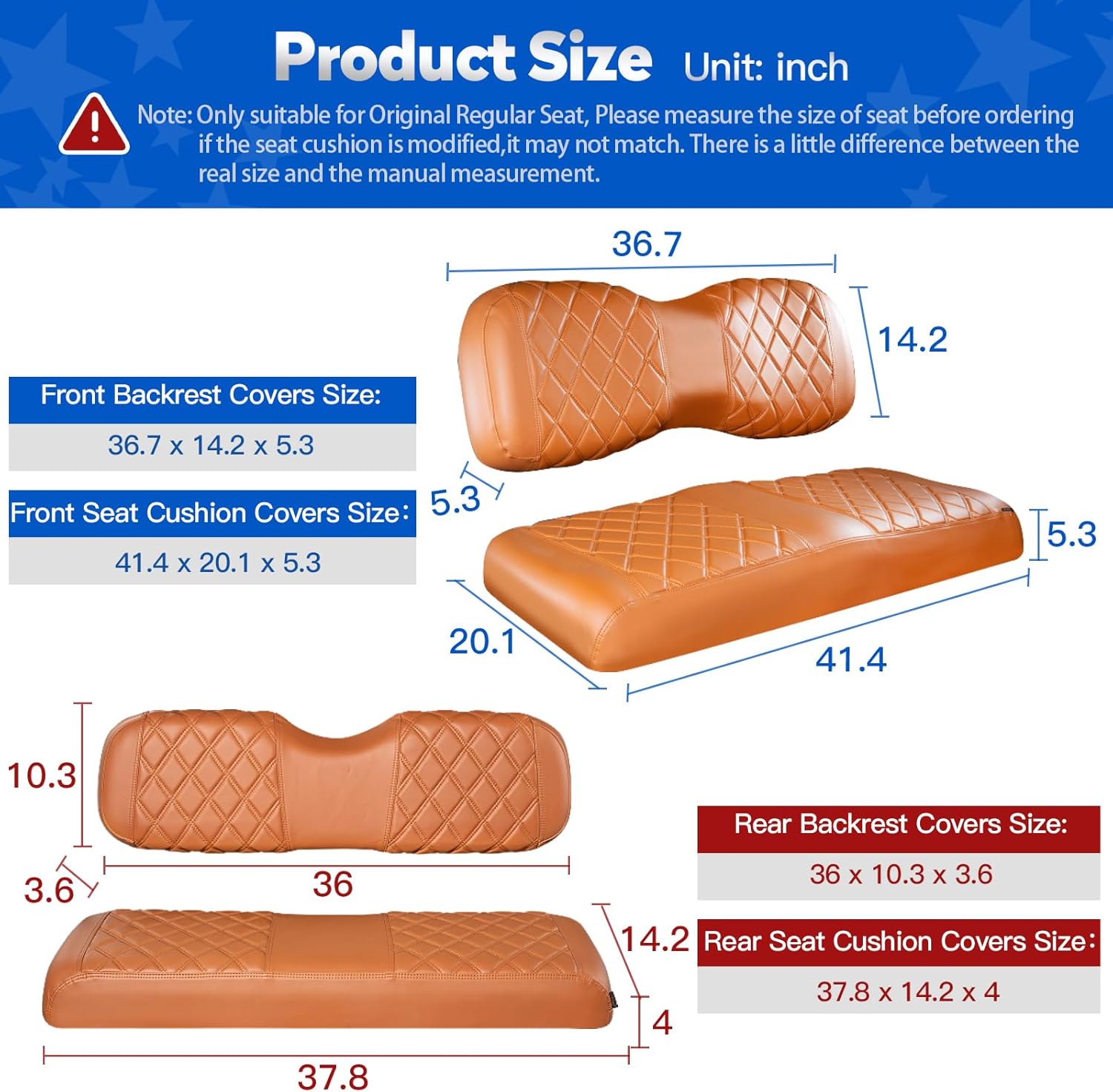 - NOTE: SIZE: Front seat cushion cover: (41.4x20.1x5.3 in)+Backrest cover: (36.7x14.2x5.3 in) / Rear seat cushion cover: (37.8x14.2x4 in)+Backrest cover:(36x10.3x3.6 in). Please measure your seat size before purchase.