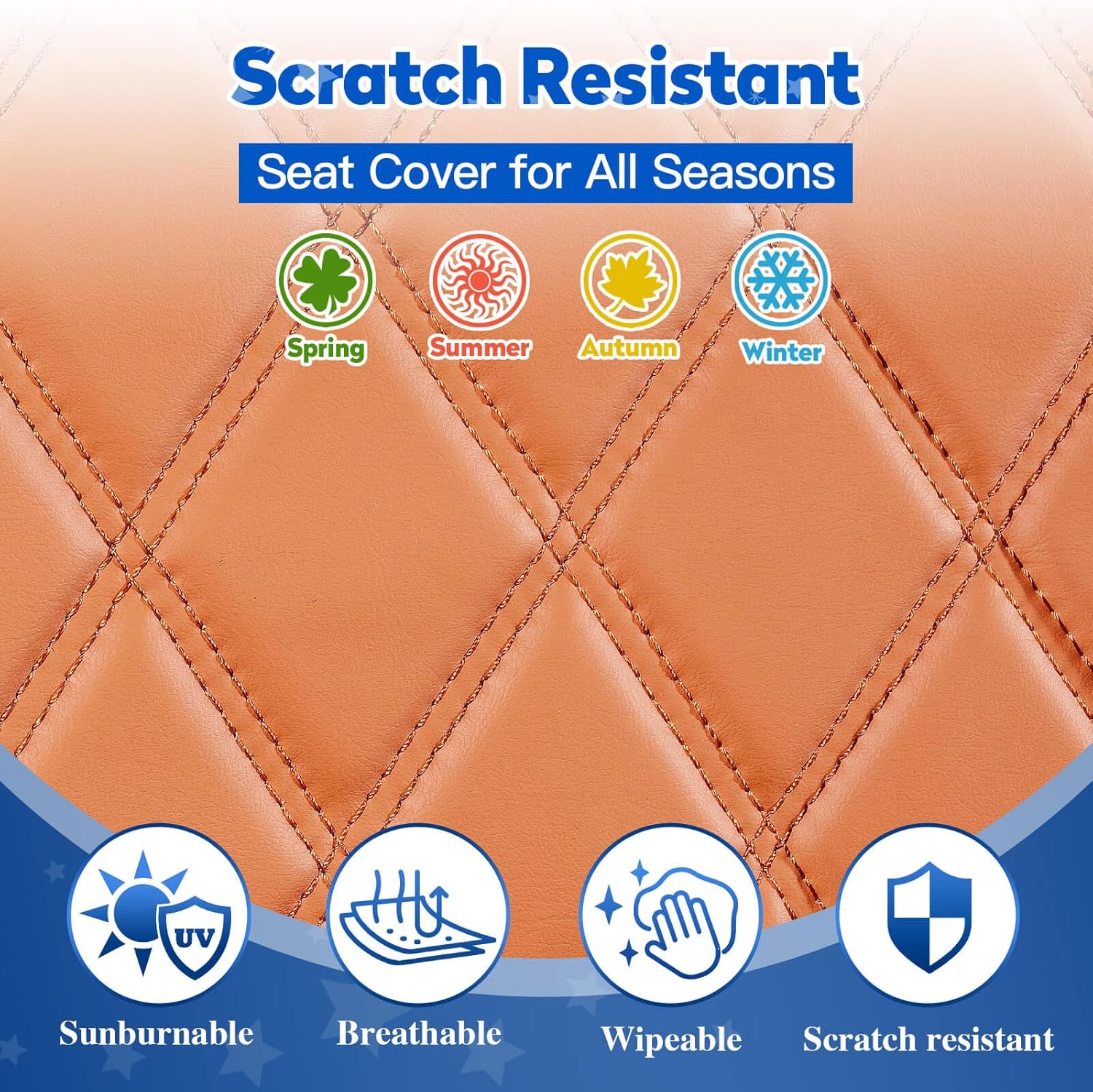 - High Quality Materials: This golf cart front and rear seat covers kit is made of high quality and durable vinyl, very soft, durable, scratch-resistant, UV-resistant, easy to clean, no need to worry about fading and cracking. The inner layer is made of high resilience thick breathable sponge for added comfort and good experience for your golf ride.