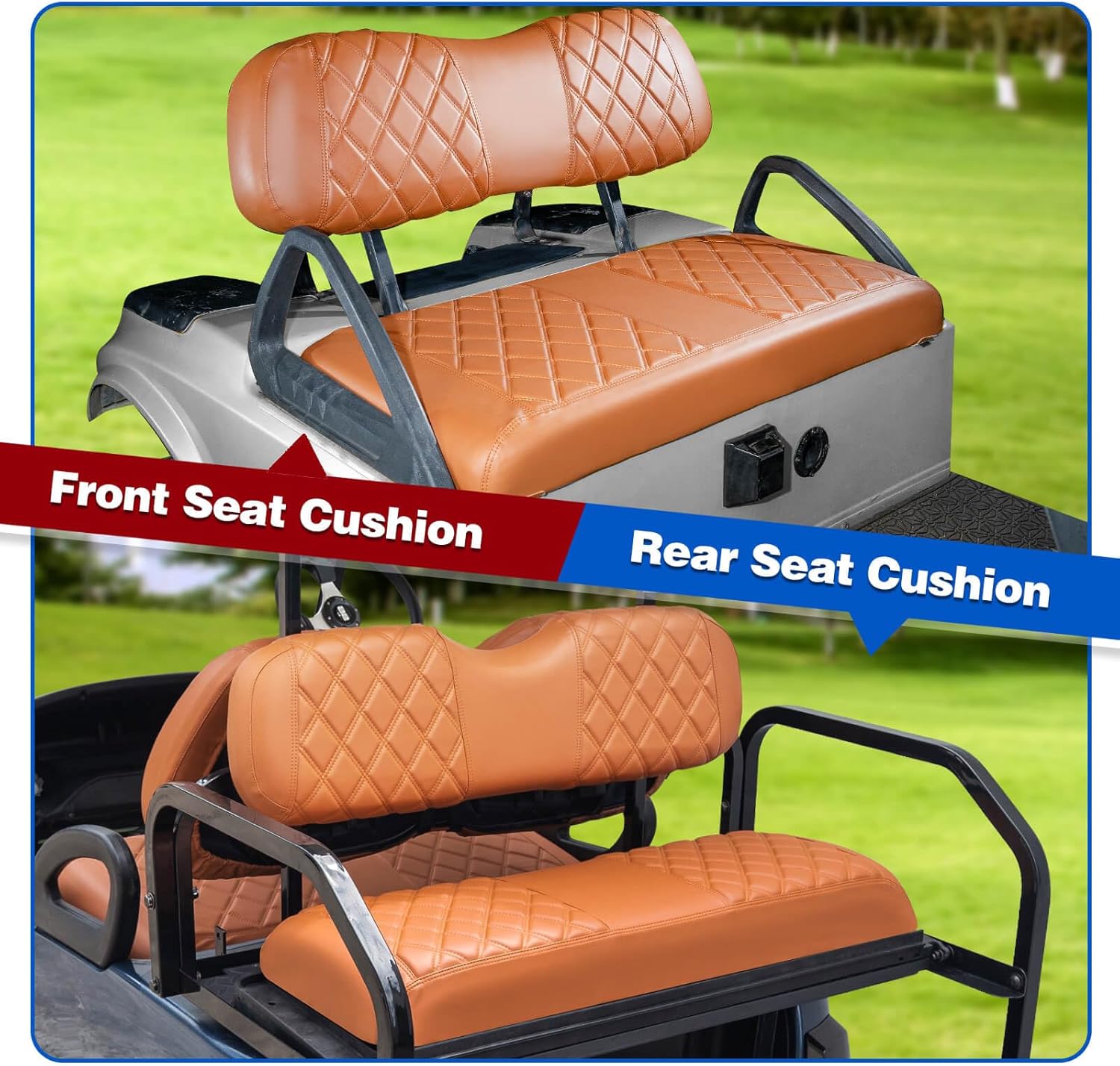 - Double Stitched Diamond Exterior Design: The golf cart seat covers are designed with a double stitched diamond pattern, adding a touch of luxury and elegance to your golf cart that is sure to turn heads on the course. Upgrade your golf cart's old seats.
