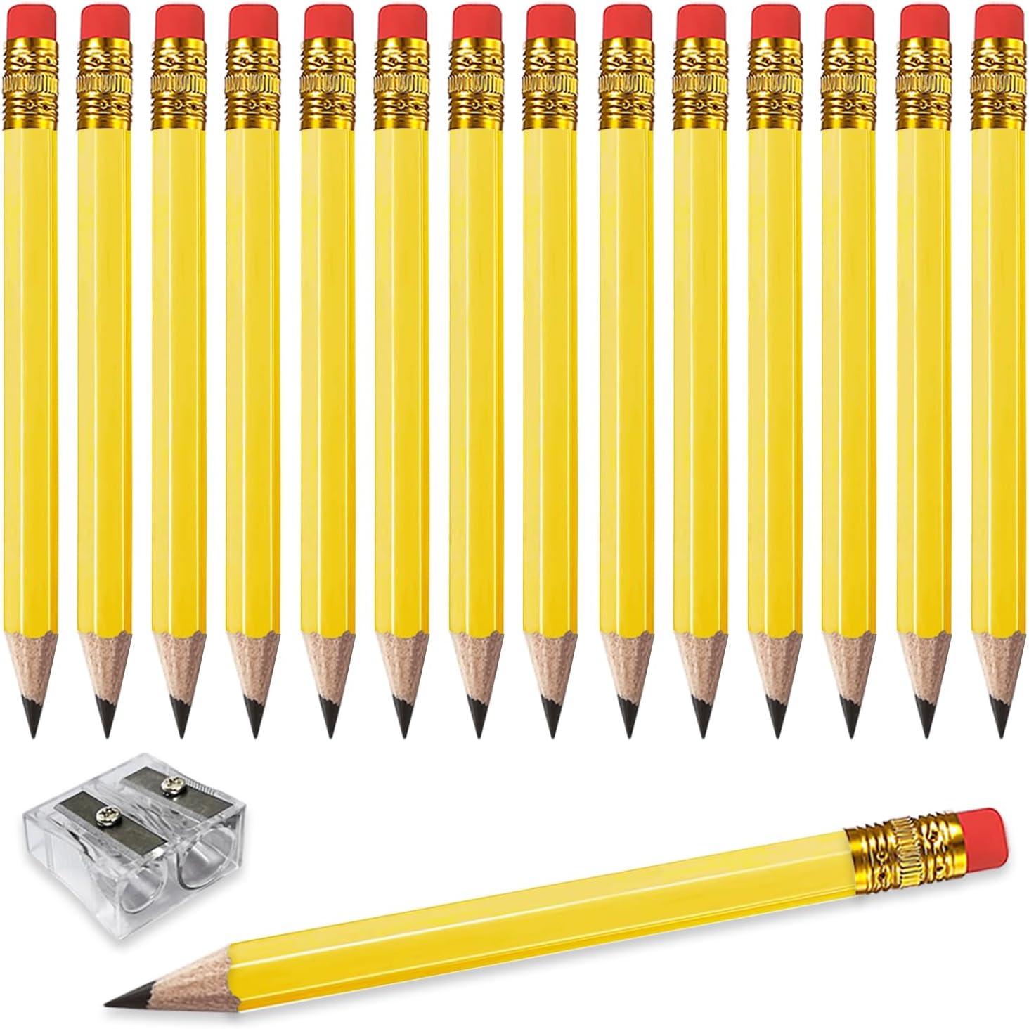 Adhere 25pcs Golf Pencils with eraser Hexagon Wooden Pencils Graphite 2B for Golf Event Scoring,Classroom,Wedding,Company Meetings,Pew, Pocket (Yellow1)