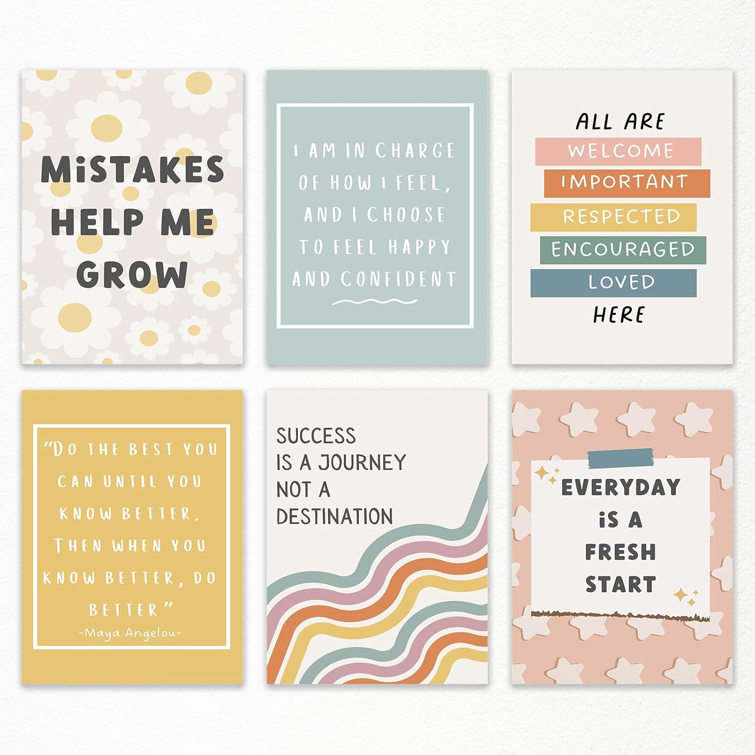 Set of 6 Boho Inspirational Classroom Posters, Positive Affirmations Growth Mindset Canvas Wall Art, Modern Classroom School Posters Wall Decor, Bulletin Board Educational Decor 12x16in Unframed