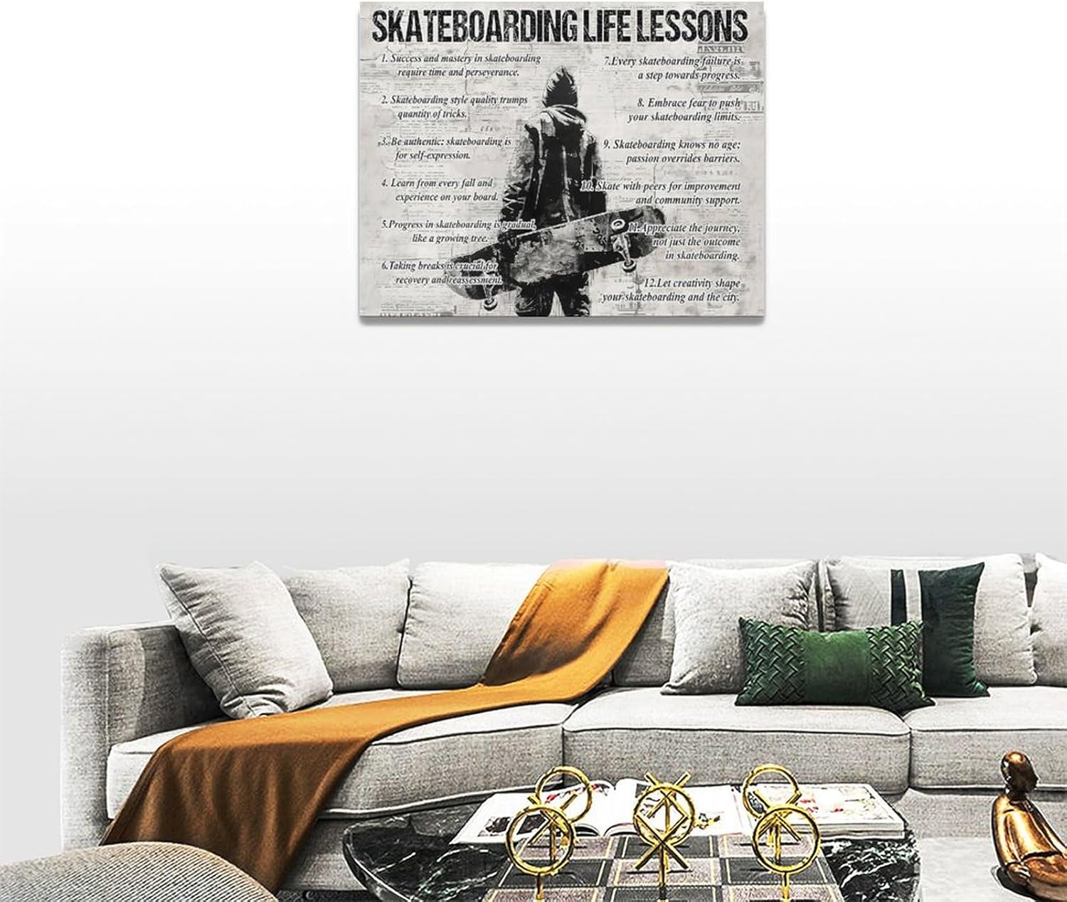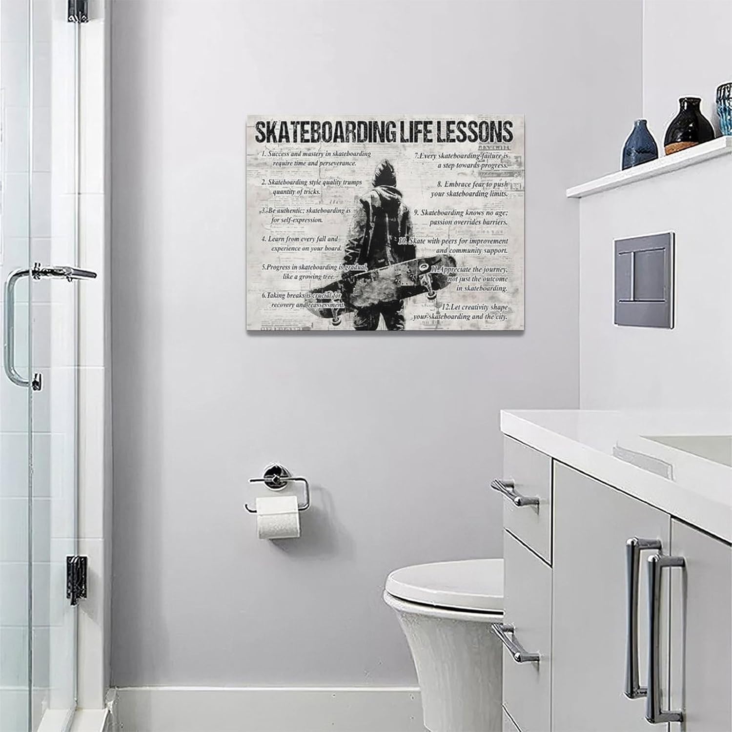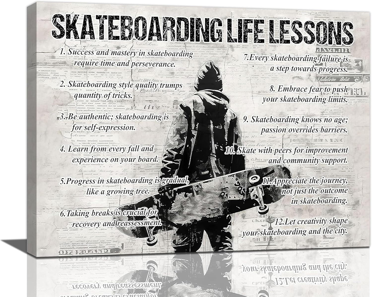 Skateboarding Sports Wall Art Skateboarding Life Lessons Wall Decor Skateboard Sign Retro Poster Boy Men Motivational Decorations Canvas Print Painting Artwork for Bedroom Living Room Gym 16"x12"