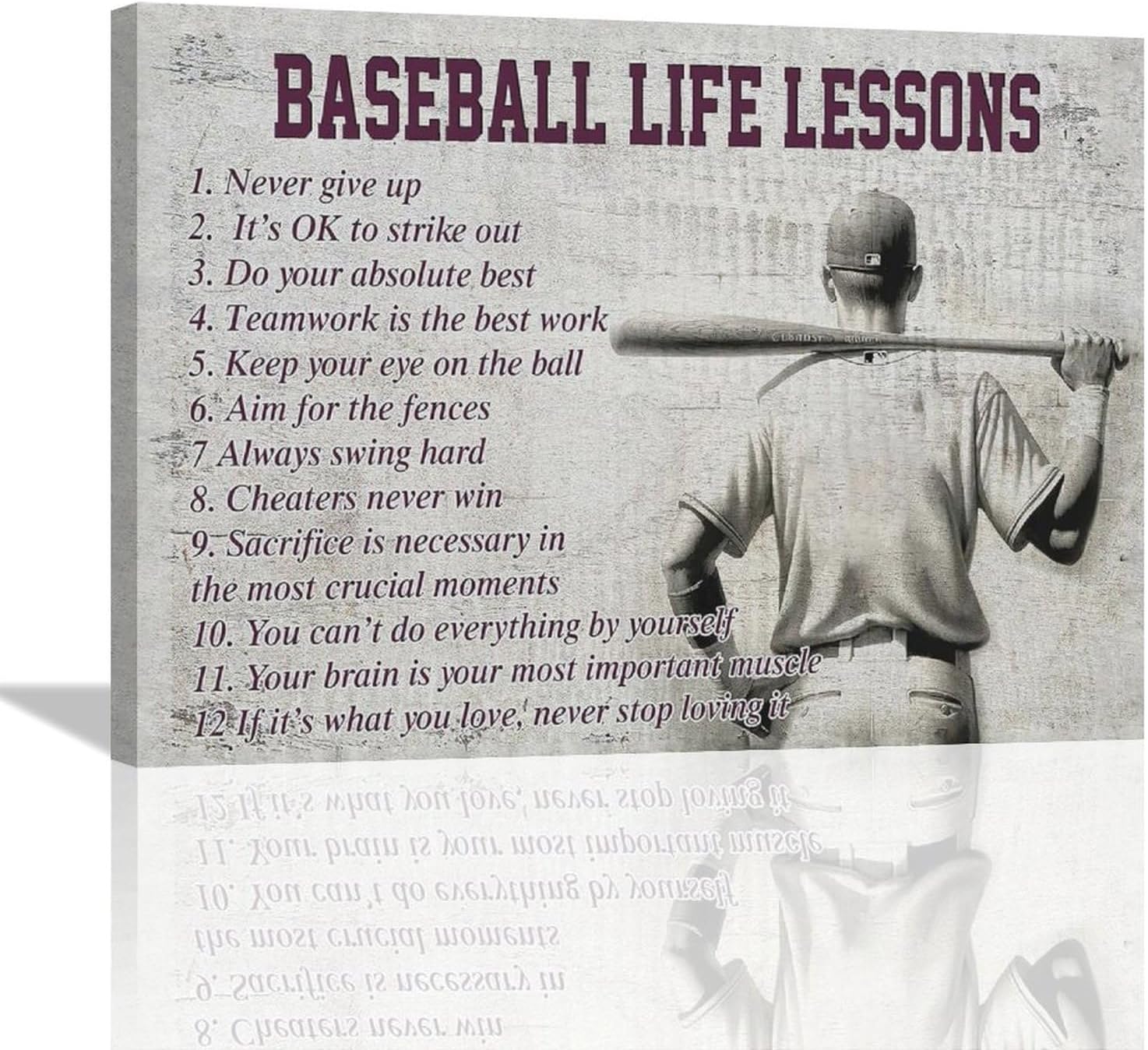 Baseball Sports Wall Art Baseball Life Lessons Wall Decor Baseball Sign Retro Poster Boy Men Motivational Decorations Canvas Print Painting Artwork for Bedroom Bathroom Living Room Gym 16"x12"