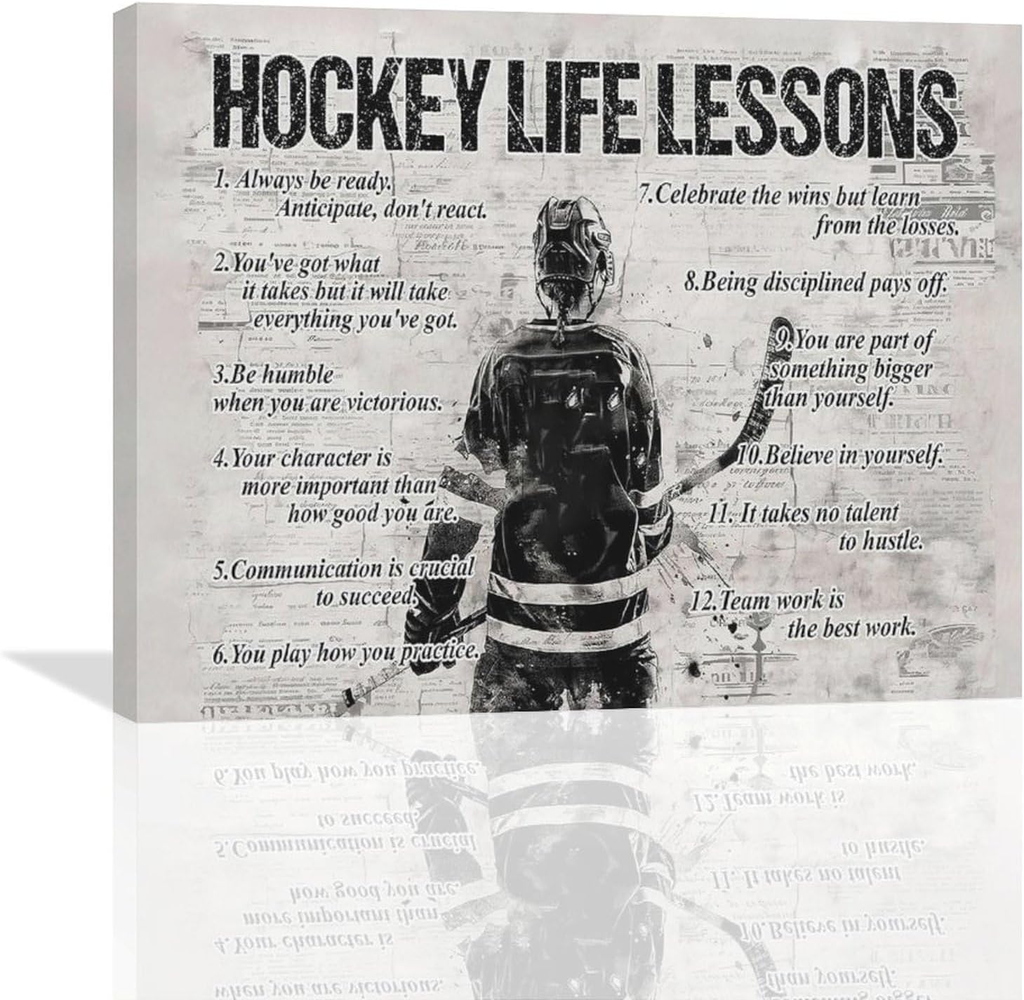 Hockey Sports Wall Art Hockey Life Lessons Wall Decor Hockey Sign Retro Poster Boy Men Motivational Decorations Canvas Print Painting Artwork for Bedroom Bathroom Living Room Gym 20"x16"