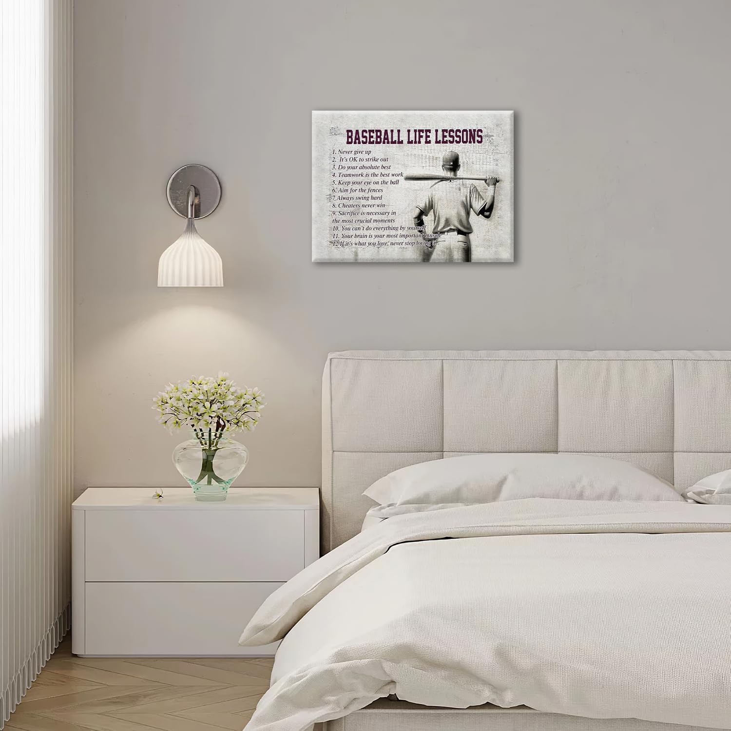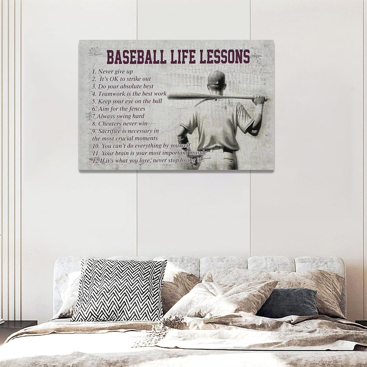 Baseball Sports Wall Art Baseball Life Lessons Wall Decor Baseball Sign Retro Poster Boy Men Motivational Decorations Canvas Print Painting Artwork for Bedroom Bathroom Living Room Gym 24"x16"