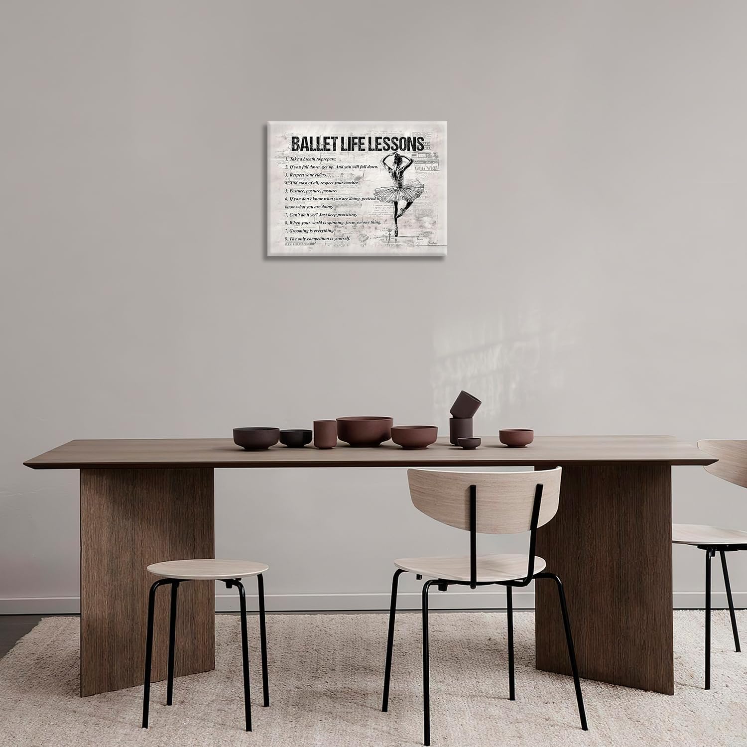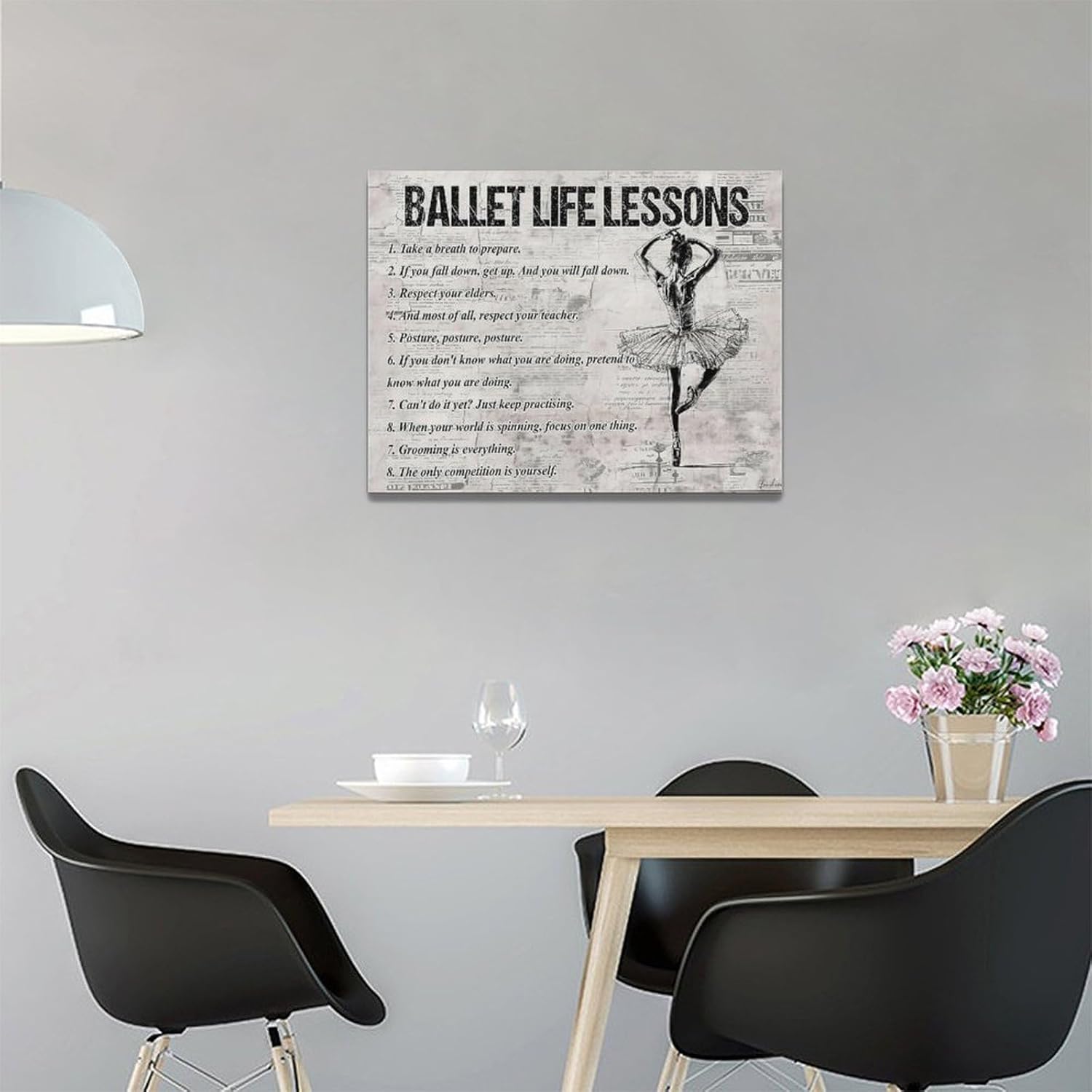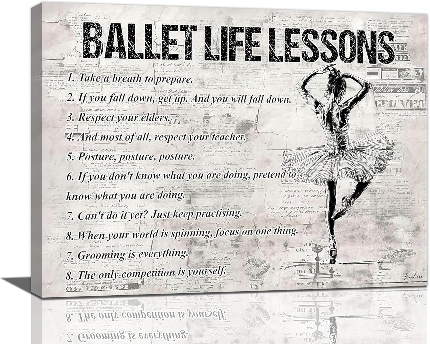 Ballet Dance Wall Art Ballet Life Lessons Wall Decor Ballet Sign Retro Poster Girls Woman Motivational Decorations Canvas Print Painting Artwork for Bedroom Bathroom Living Room Gym 16"x12"
