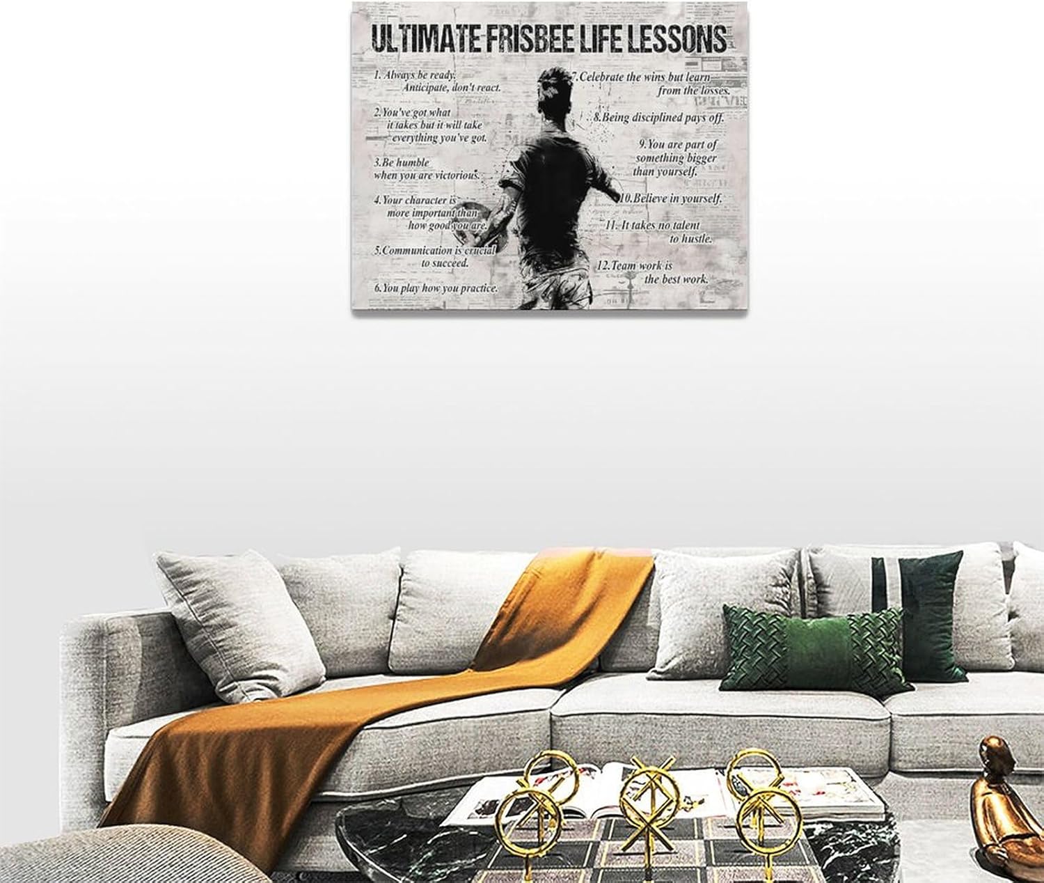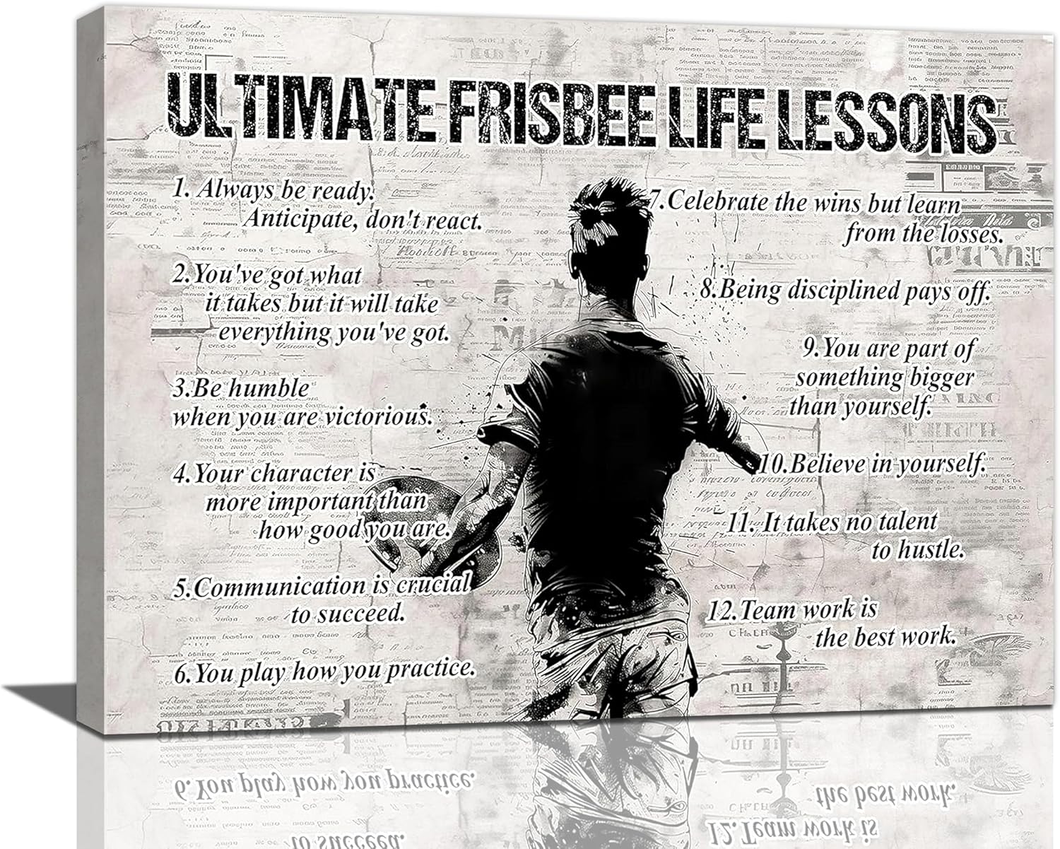 Ultimate Frisbee Sports Wall Art Life Lessons Decor Sign Retro Poster Boy Men Motivational Decorations Canvas Print Painting Artwork for Bedroom Living Room Gym 16"x12"