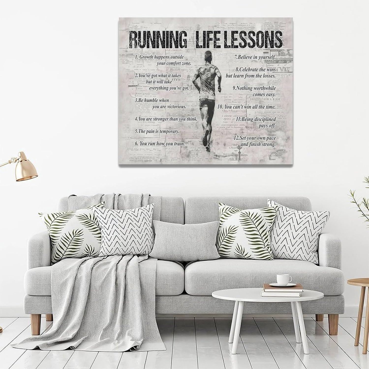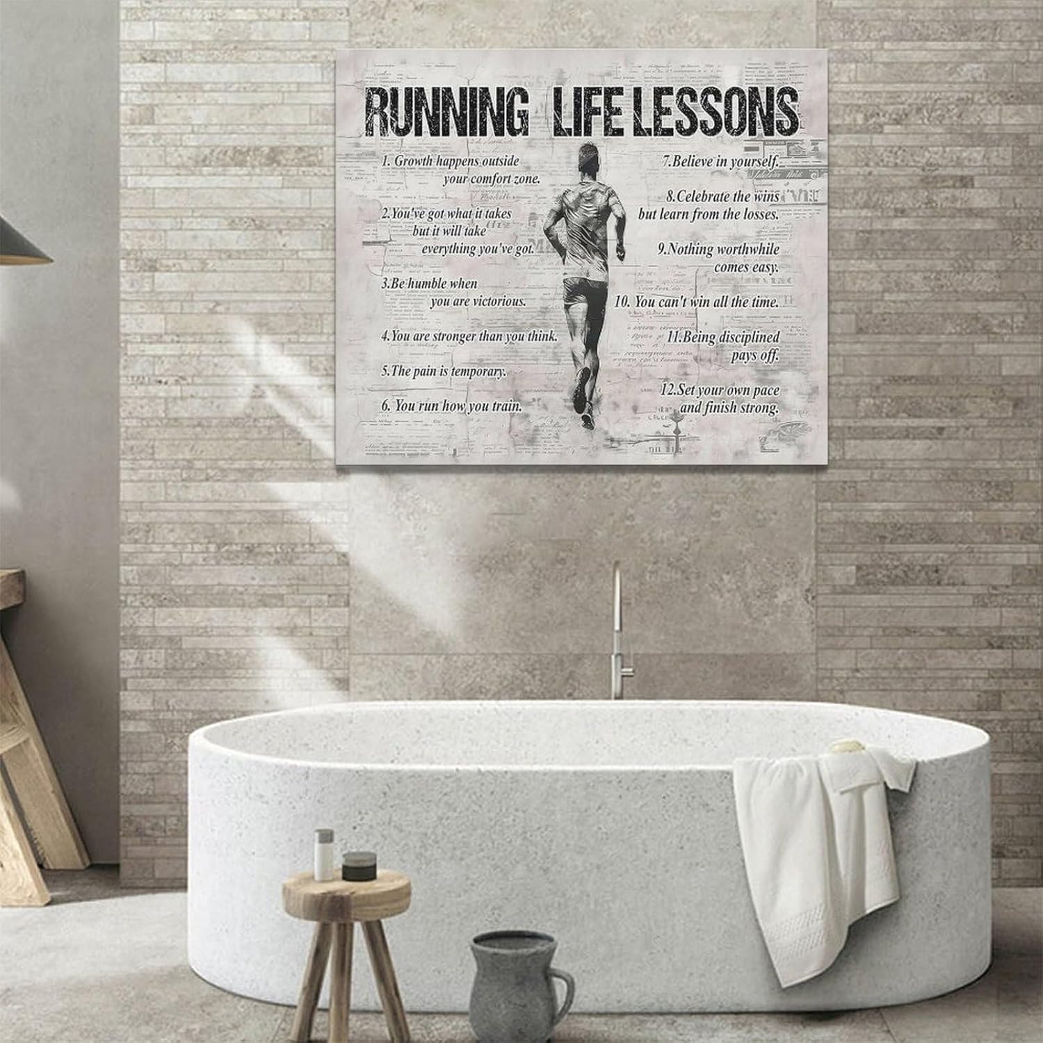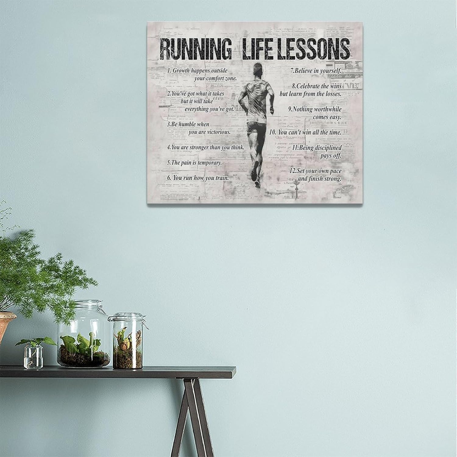 Running Life Lessons Wall Art Running Sports Wall Decor Running Sign Retro Poster Boy Men Motivational Decorations Canvas Print Painting Artwork for Bedroom Bathroom Living Room Gym 24"x20"