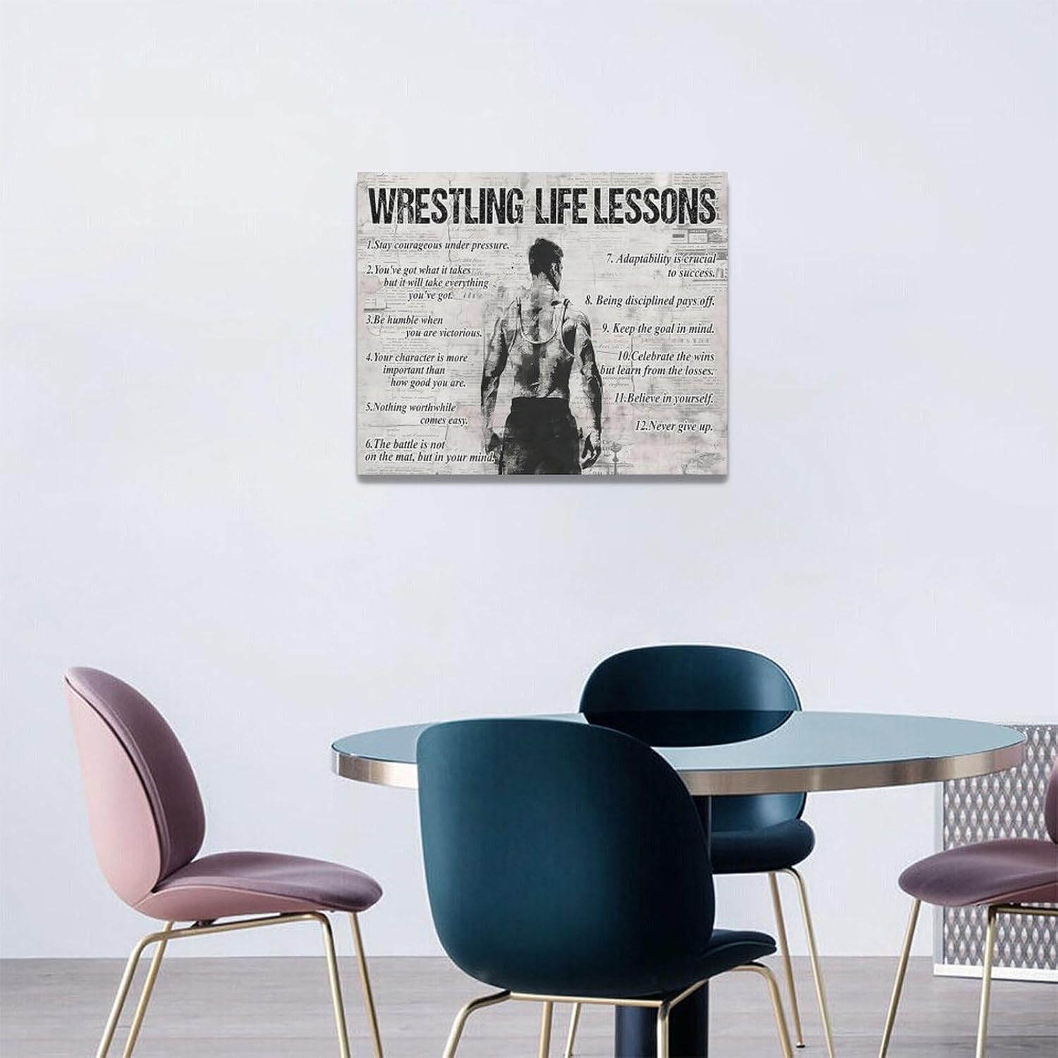 Wrestling Life Lessons Wall Art - Sports Sign Retro Poster for Boy Men - Motivational Decorations Canvas Print Painting Artwork for Bedroom Bathroom Living Room Gym 20"x16"