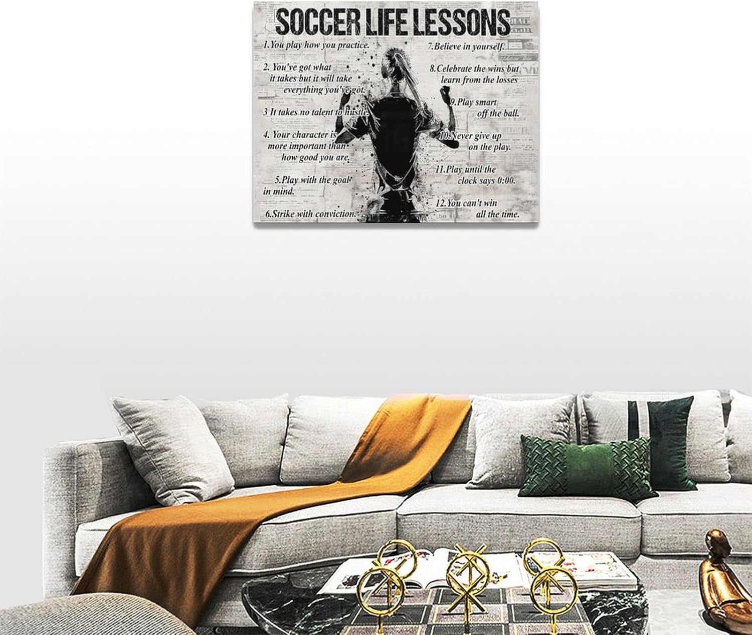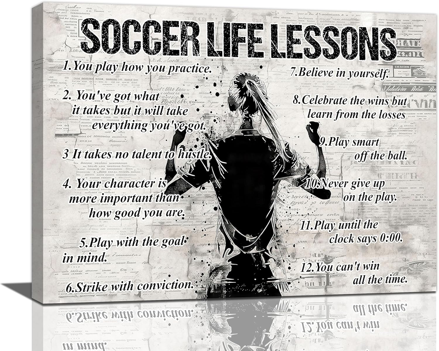 Soccer Sports Wall Art Soccer Life Lessons Wall Decor Soccer Sign Retro Poster Boy Men Motivational Decorations Canvas Print Painting Artwork for Bedroom Bathroom Living Room Gym 16"x12"